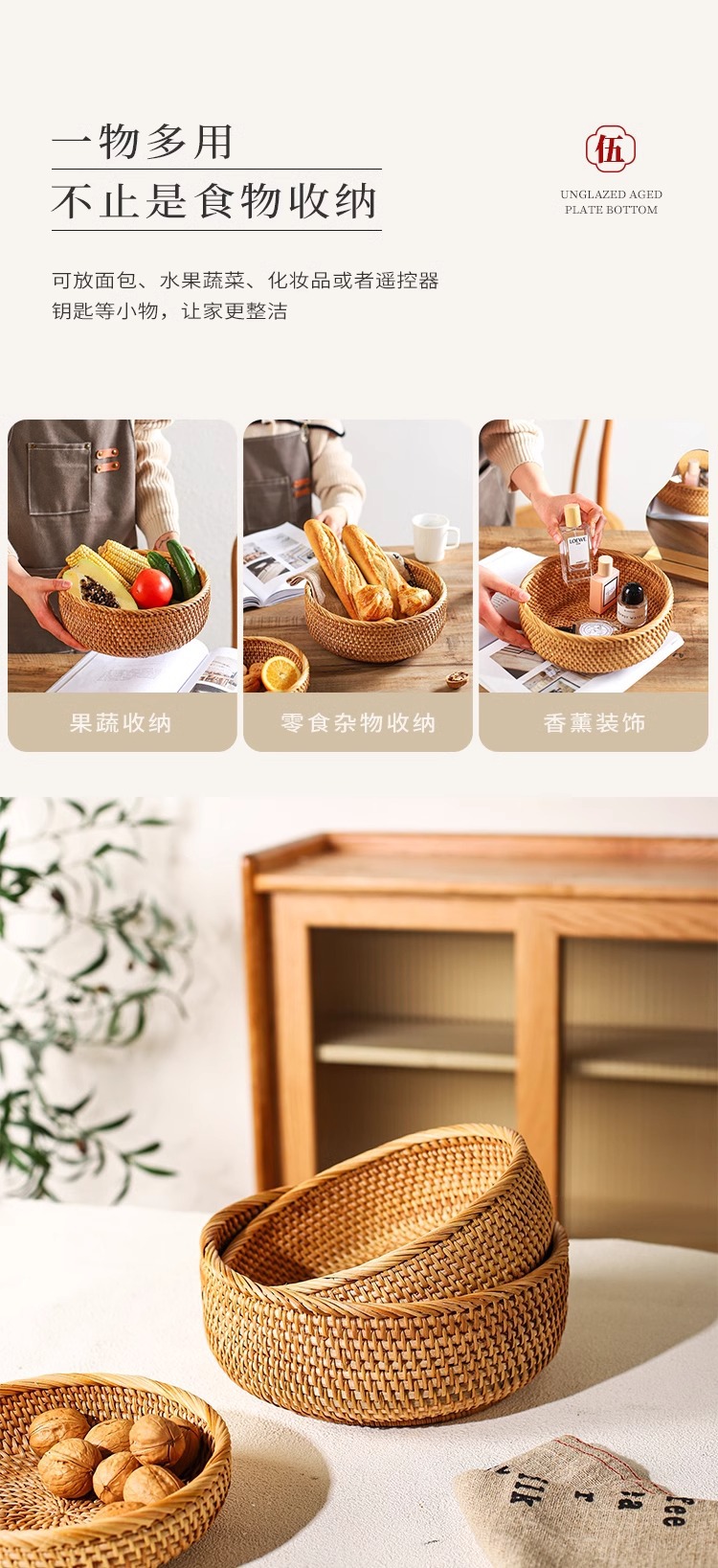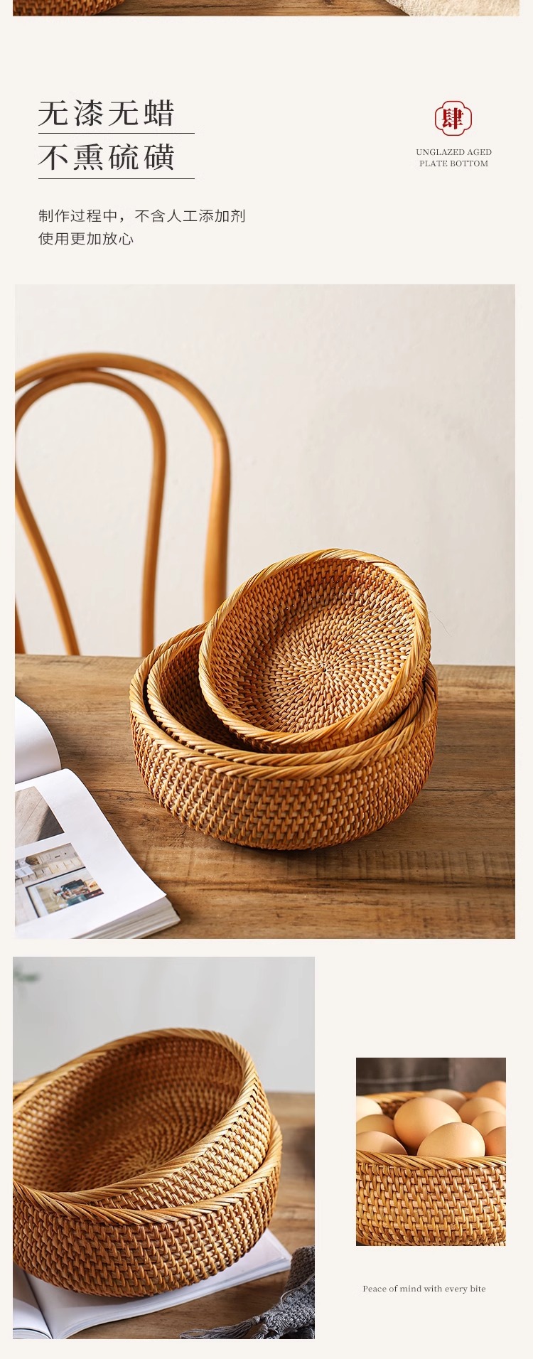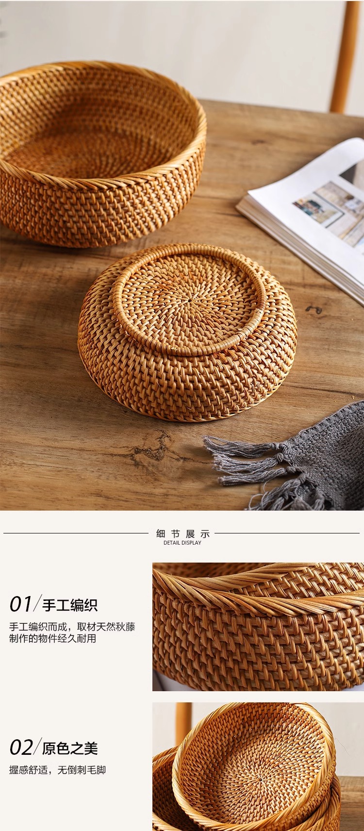 | Color | Tamaño pequeño de la bandeja redonda de ratán, tamaño medio de la bandeja redonda de ratán, tamaño grande de la bandeja redonda de ratán, conjunto de tres piezas de la bandeja redonda de Ratán |