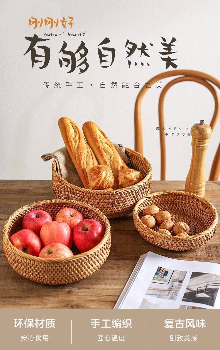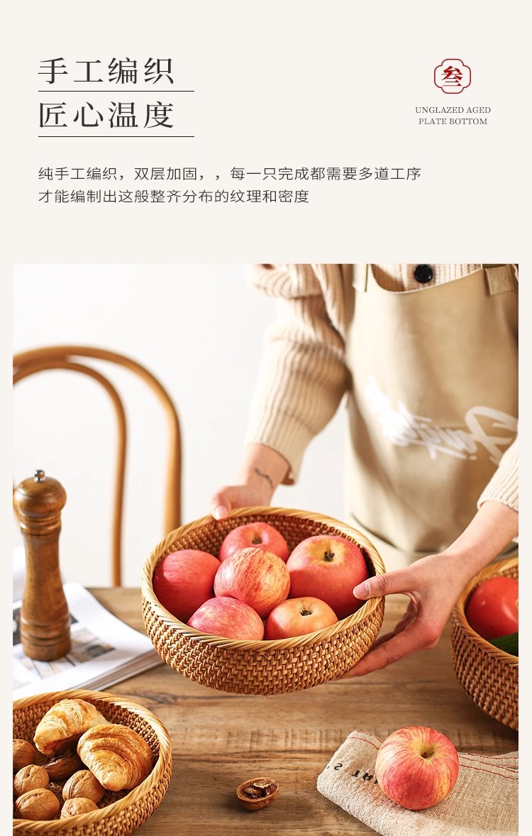Vintage artesanal trenzado bandeja de frutas trenzada pan canasta casera cesta de desayuno cesta de picnic cesta de bocadillos cesta de postres