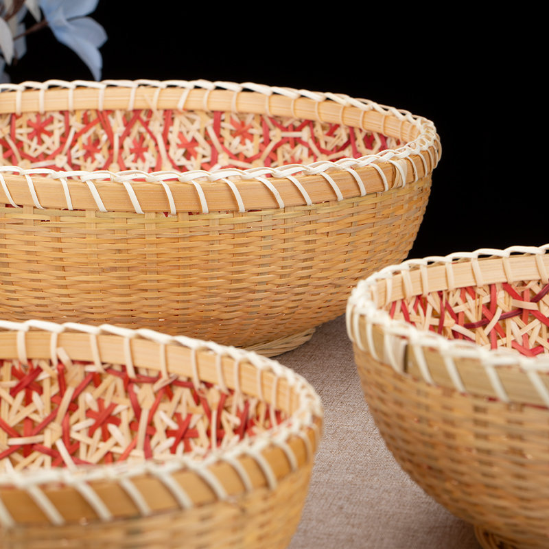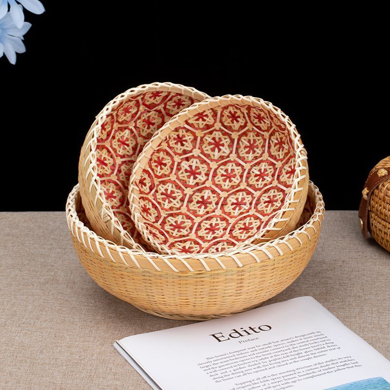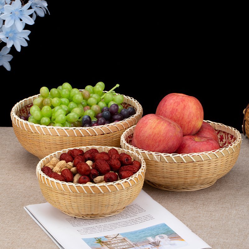 Cestas de pan al vapor de bambú trenzado cestas de almacenamiento casero bocadillos hechos a mano mesa redonda hueca pastoral sala de estar hogar