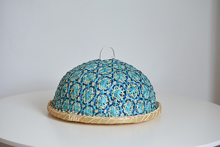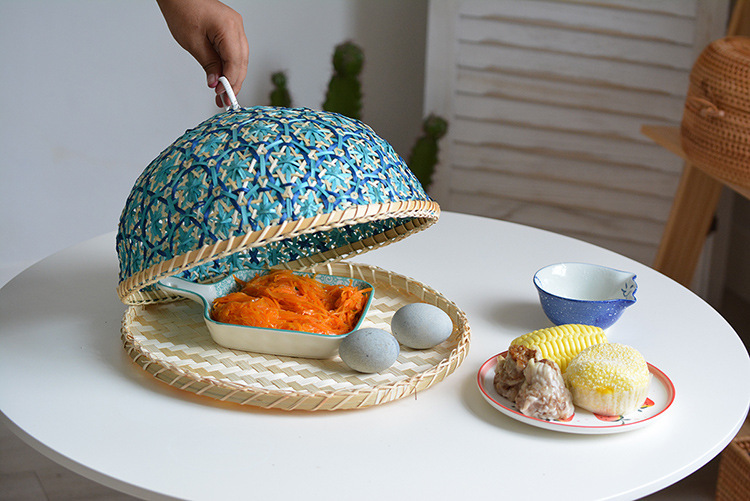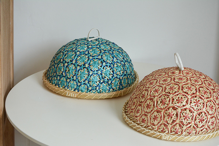 Cesta de bambú, cubierta de verduras, cocina, cubierta de alimentos a prueba de moscas para el hogar, canasta de secado de té, panadería de frutas, a prueba de polvo, recogedor redondo de bambú