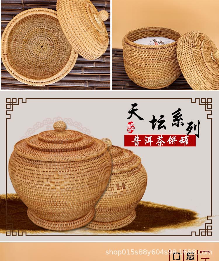 Vietnam ratán de otoño tejido Qizi pastel de té lata de té Pu'er pastel de té caja de embalaje caja de regalo almacenamiento almacenamiento cubo de té creativo