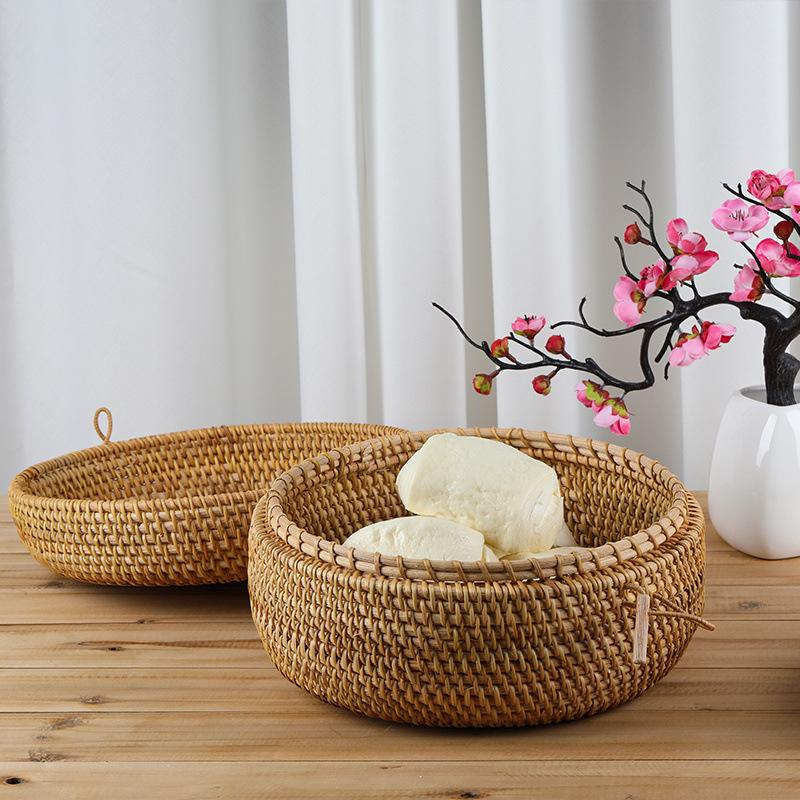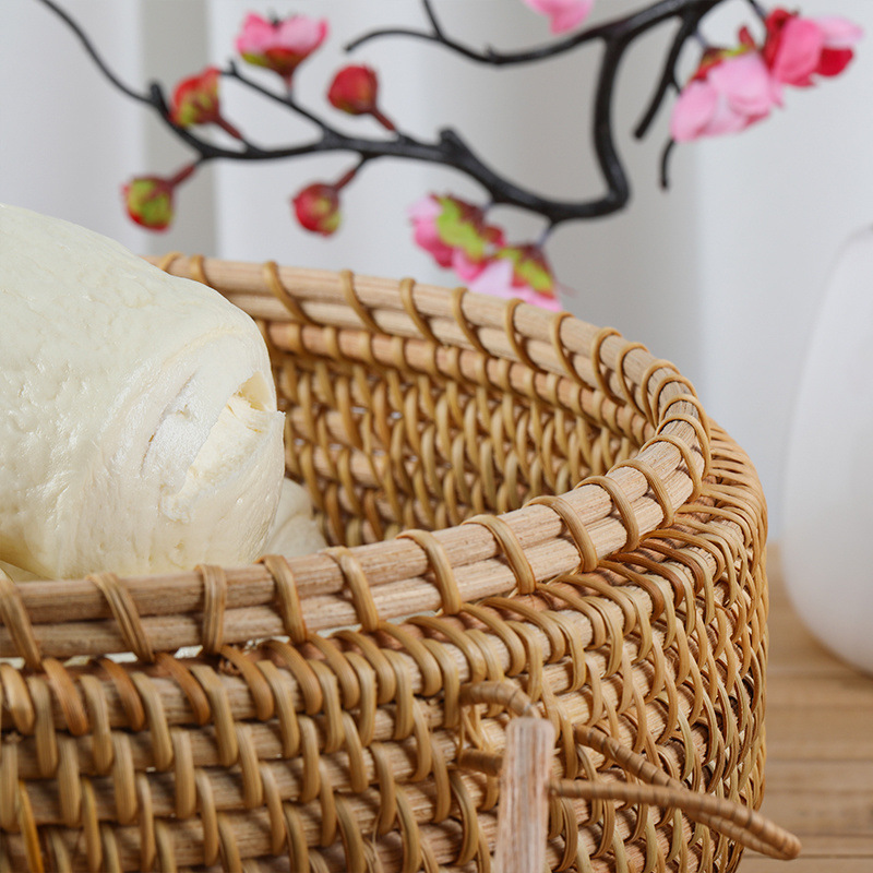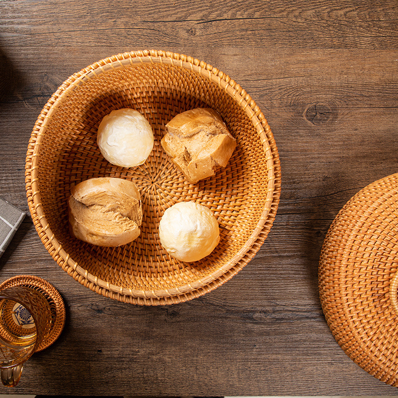 Caixa de almacenamiento de manzanas de grado alimenticio, cesto de pan al vapor tejido de caña doméstica, cesto de almacenamiento de cubierta vietnamita, retro