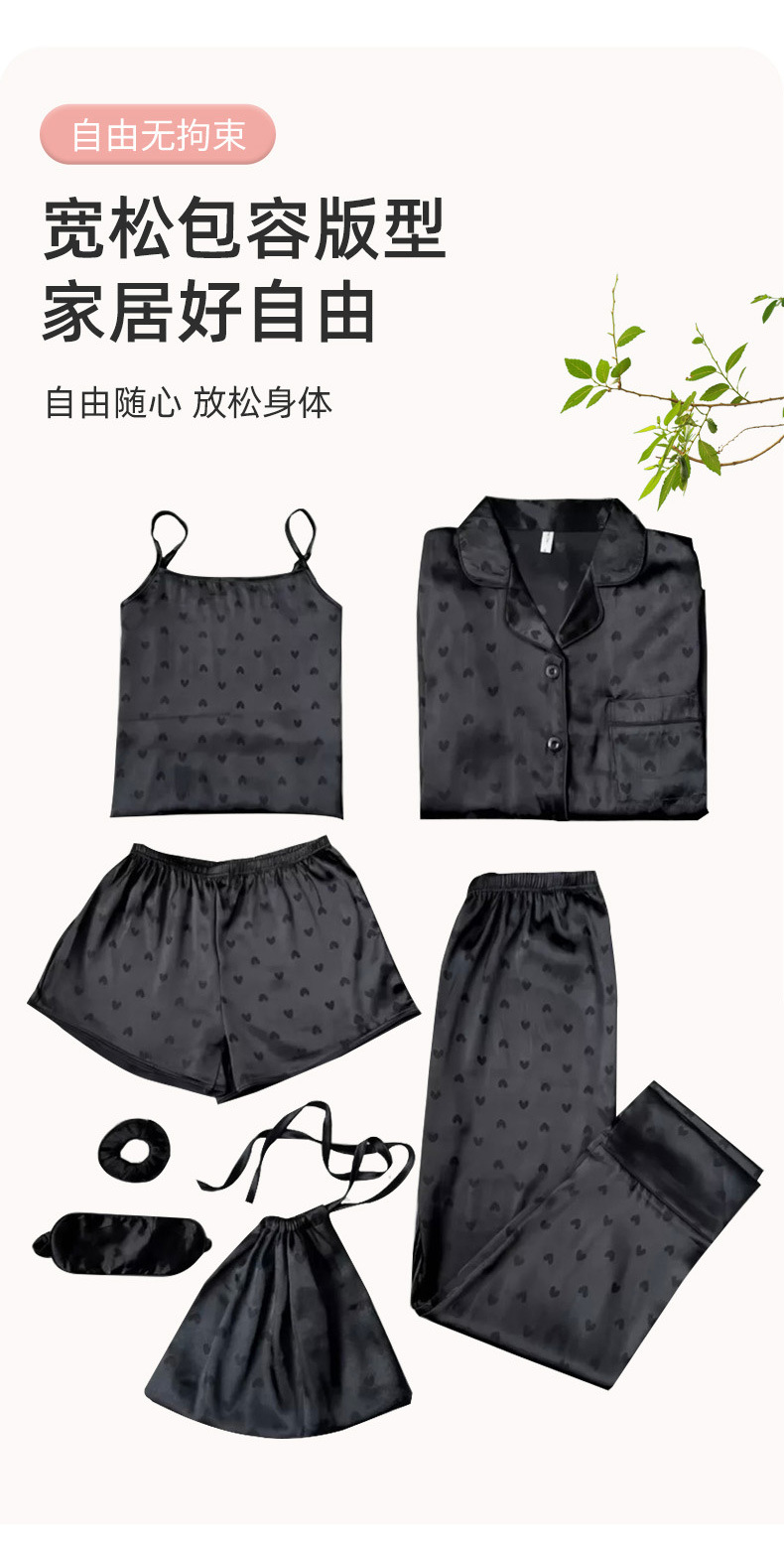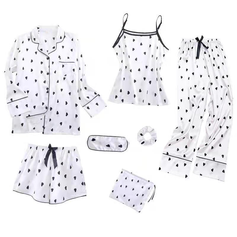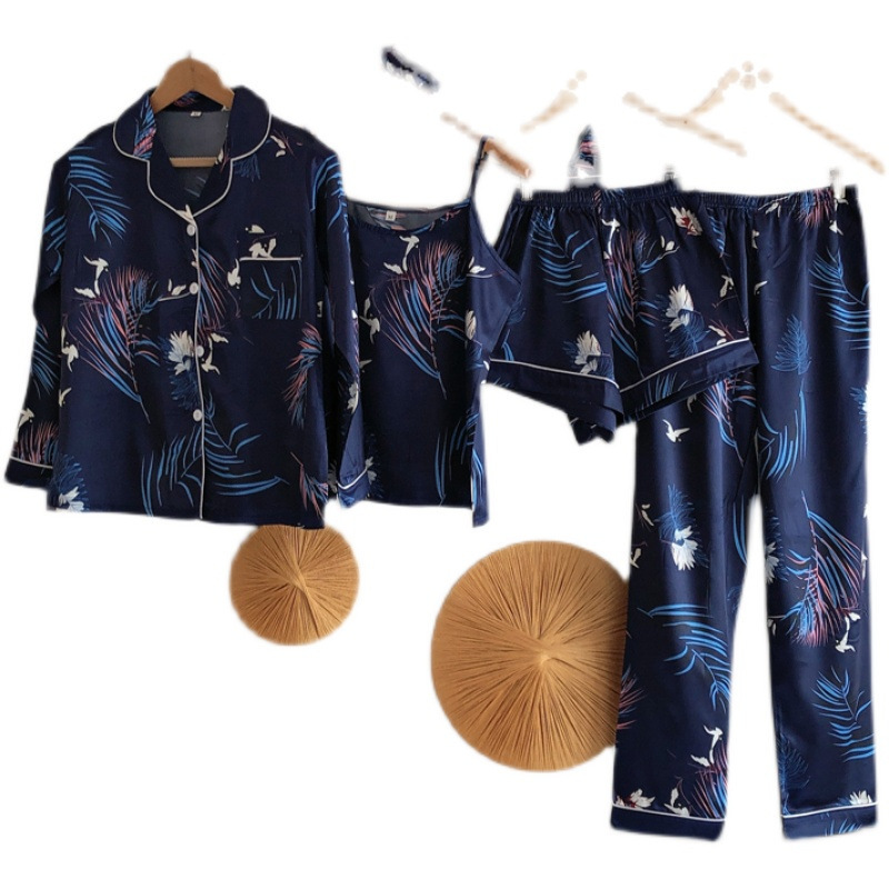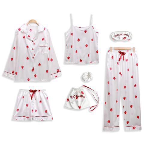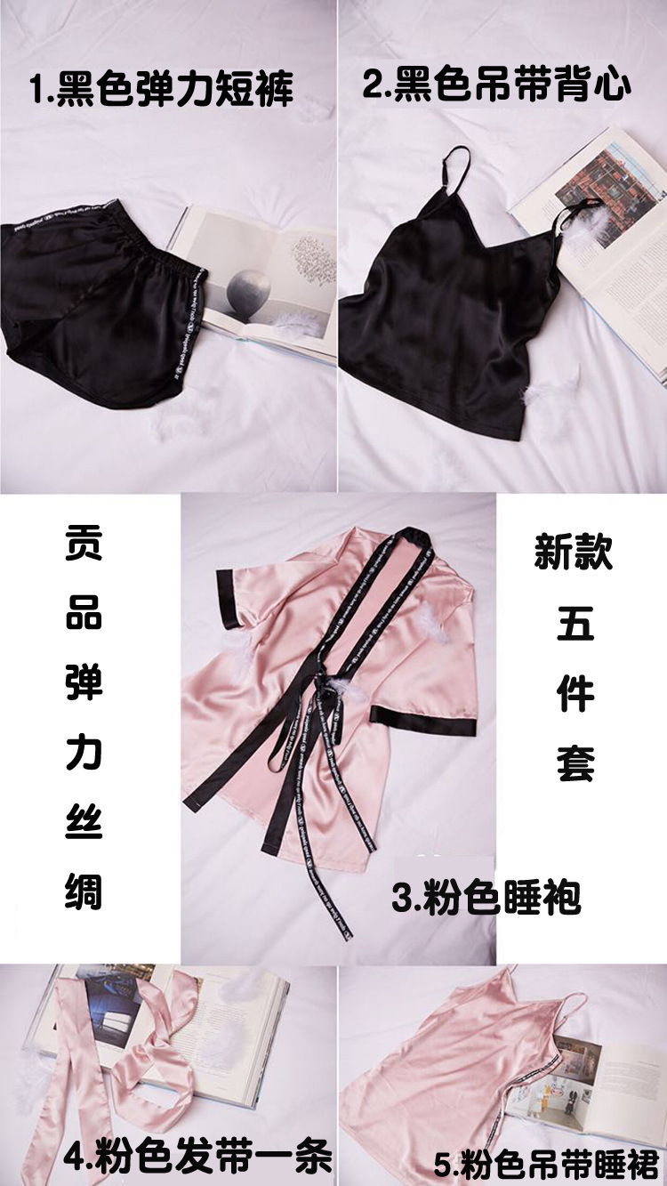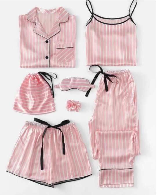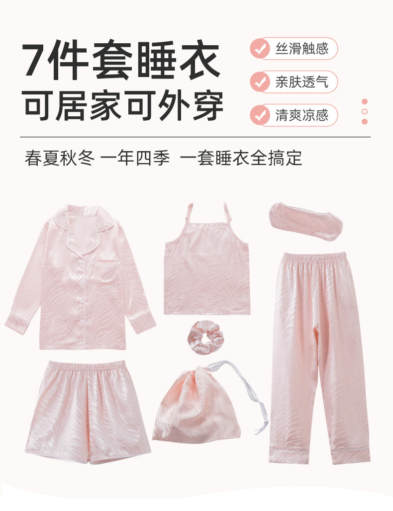 Comercio exterior de Europa y América niñas siete piezas pijamas de manga larga de seda simulación cinturón de rayas ropa de casa conjunto al por mayor