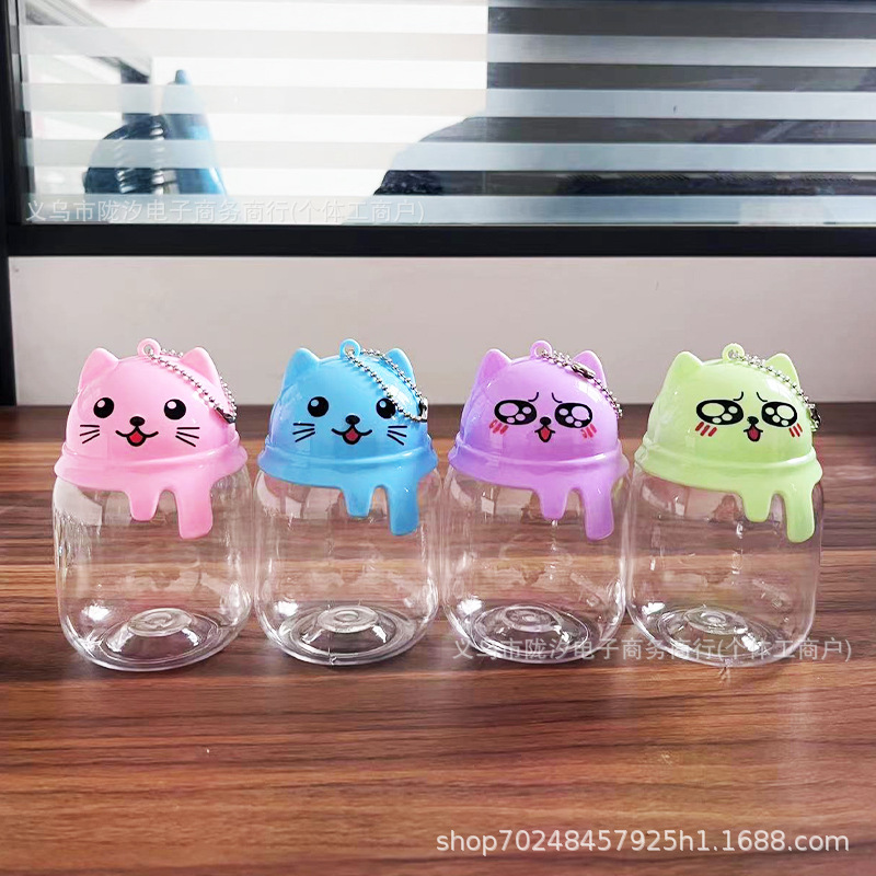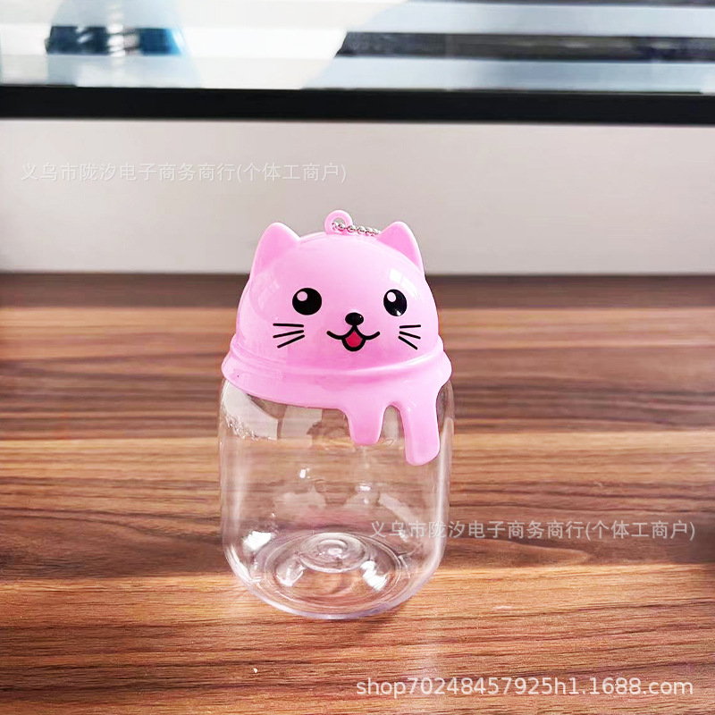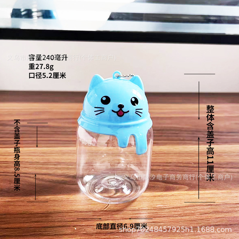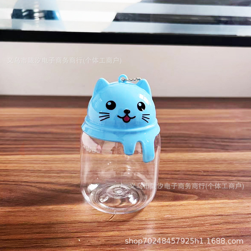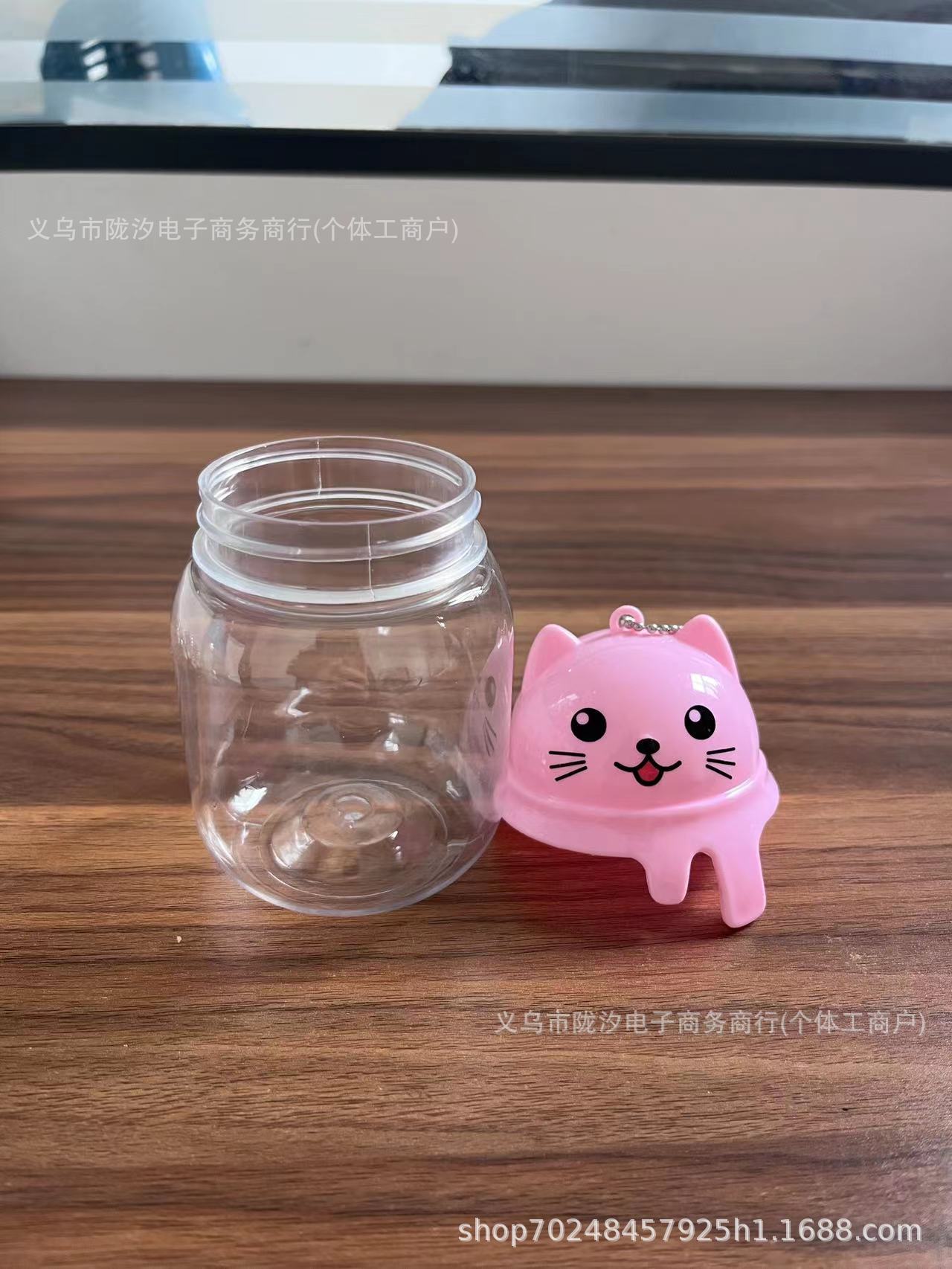 Dibujos animados latas selladas botella de plástico para mascotas de grado alimenticio con tapa transparente gato bocadillo caramelo galleta embalaje al por mayor