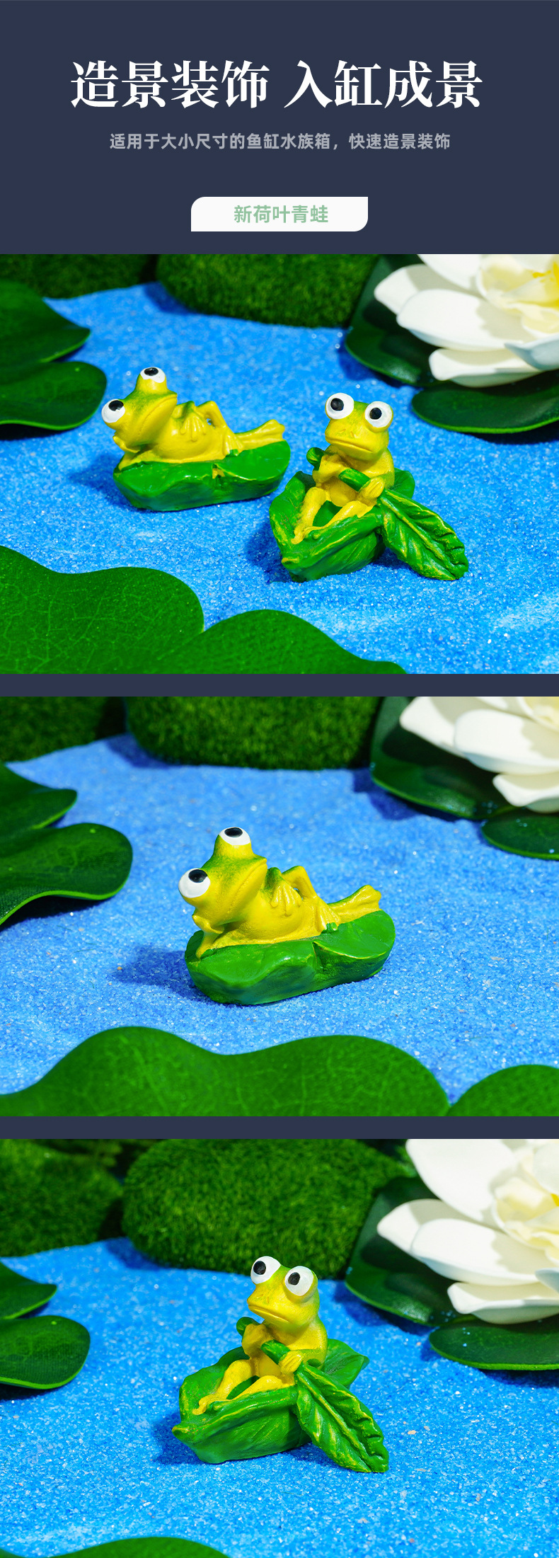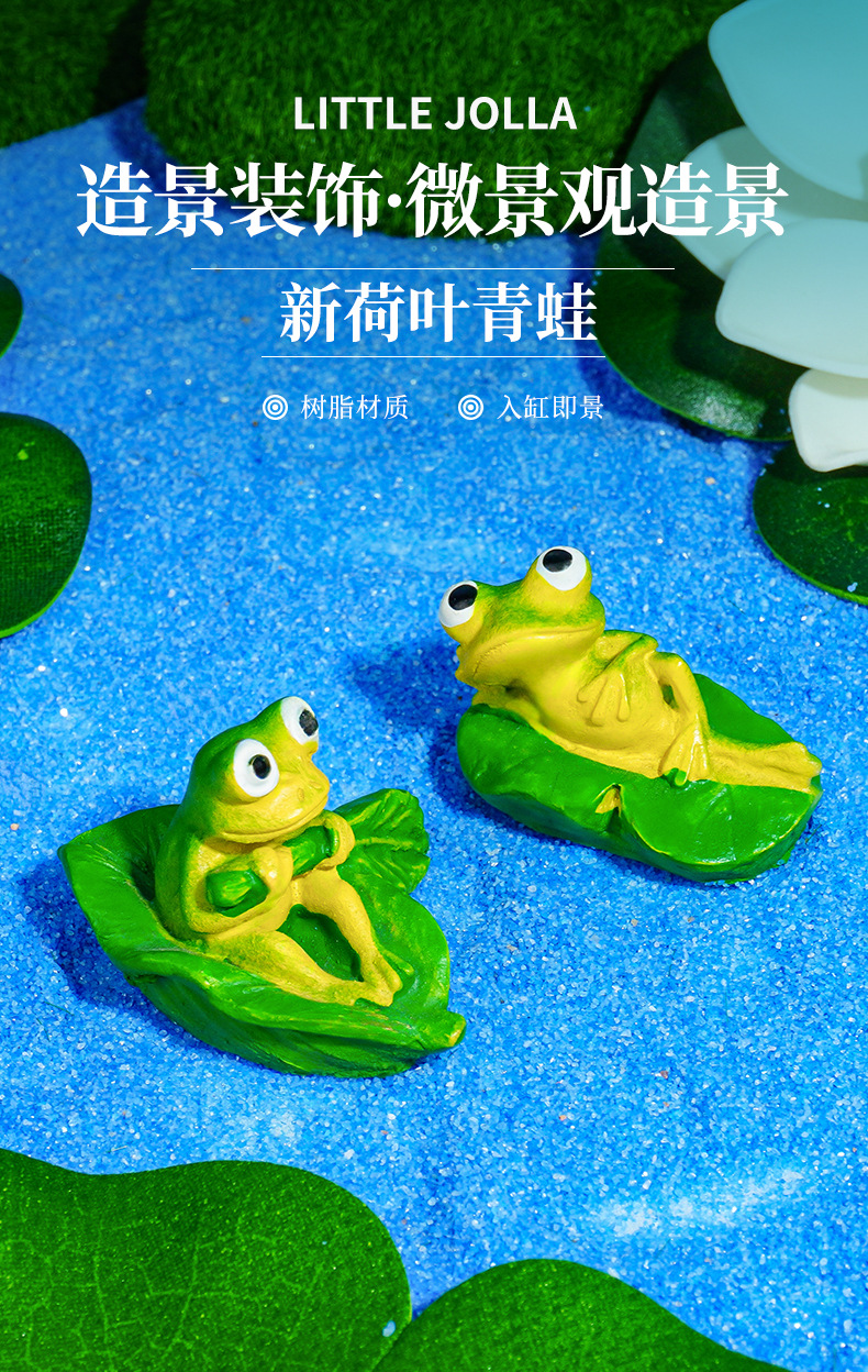 Micro paisaje de musgo Decoración de rana Decoración de acuario Nuevo montaje de bricolaje de hoja de loto Escenario de pecera