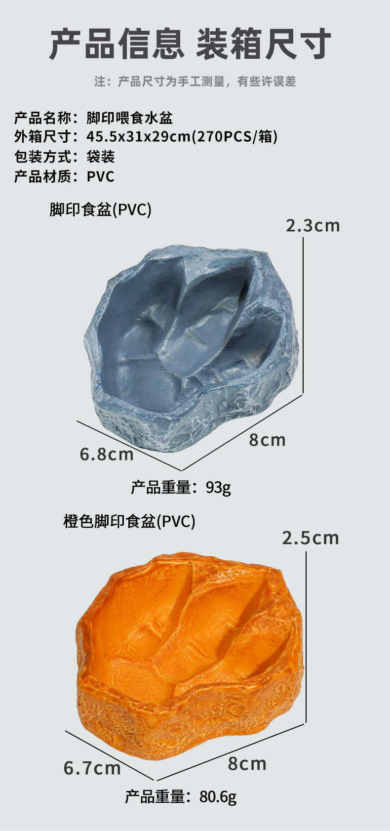 | Especificaciones | Lavabo de comida de huella naranja (PVC),Tapa de comida de huella (PVC) |