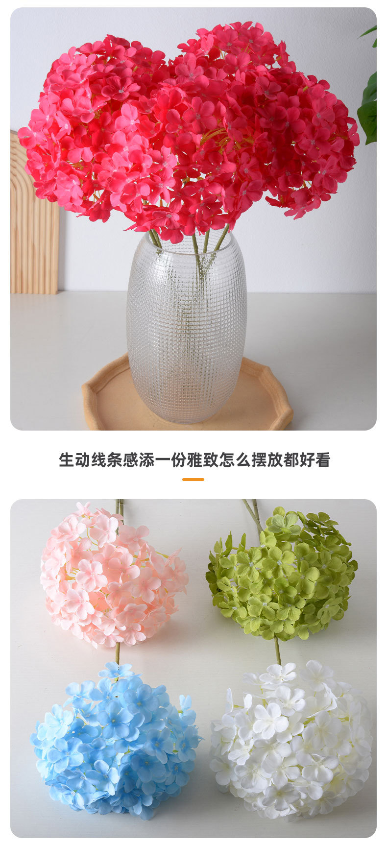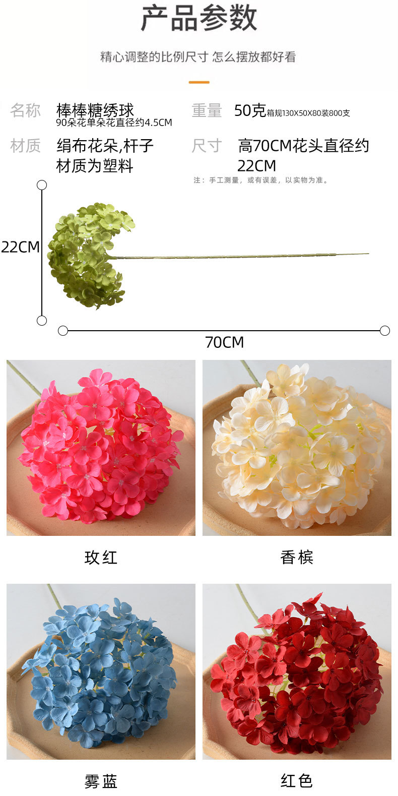 Piruleta de boda de hortensias de simulación, sentido avanzado, hortensias, auditorio de bodas, hileras de flores falsas, arreglo de pared de flores, hileras de flores