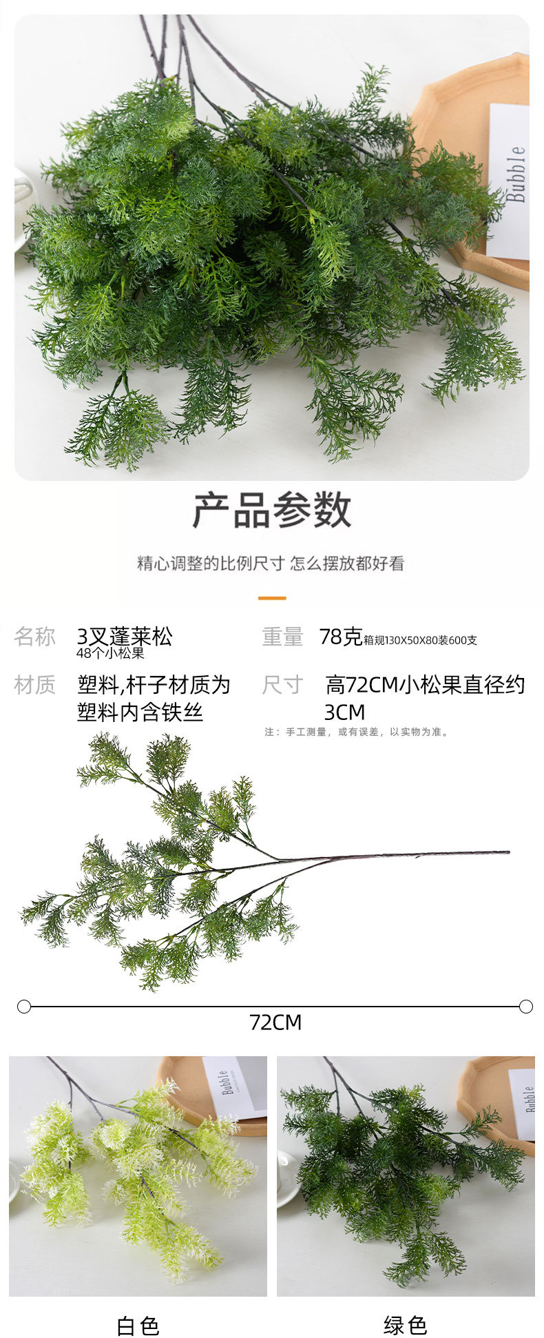 Simulación de plantas verdes, pino Penglai, hierba de colofonia gorda, decoración de salas de bodas, paisajismo, hojas de flores de bosque, flores artificiales