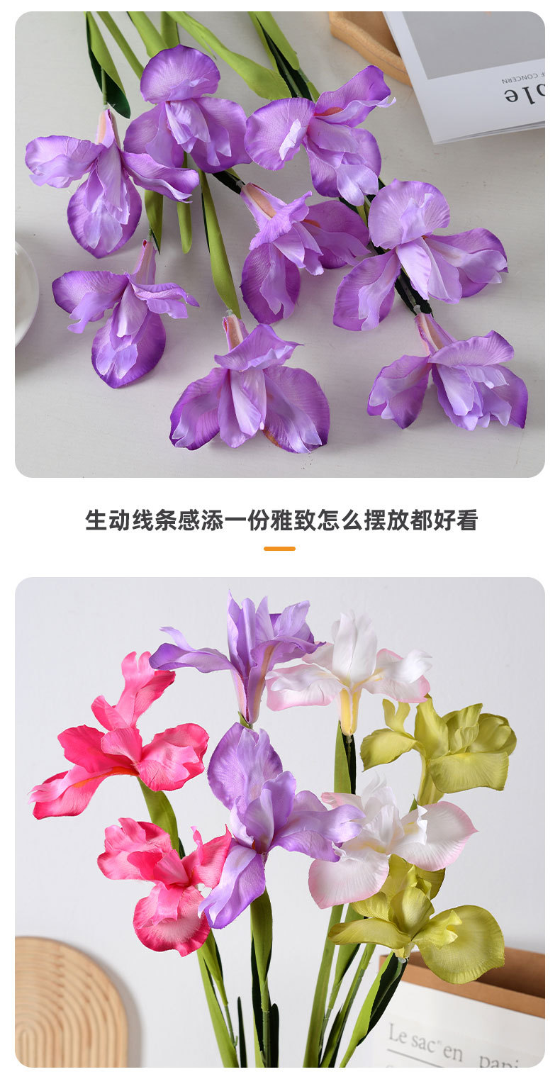 Flores de simulación 2 iris pintura al óleo de flores de boda de Alice flores de seda del salón de la boda props de disparo flores falsas celebridades en línea