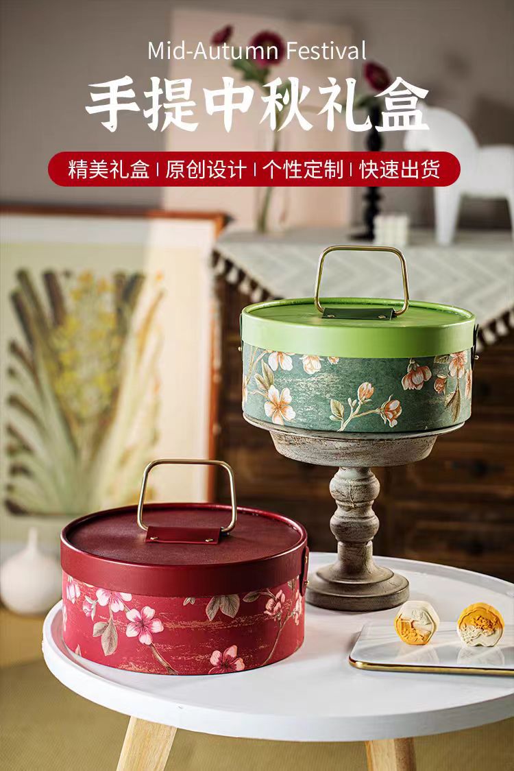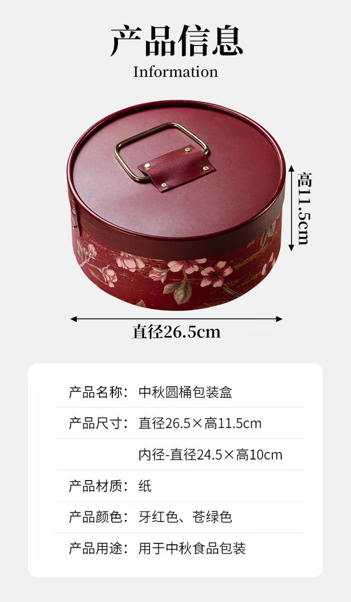 Caja de regalo del Festival del Medio Otoño, caja de regalo de embalaje de pastel de luna, caja de regalo de estilo nacional exquisita, caja dura de barril portátil, caja de regalo de hielo