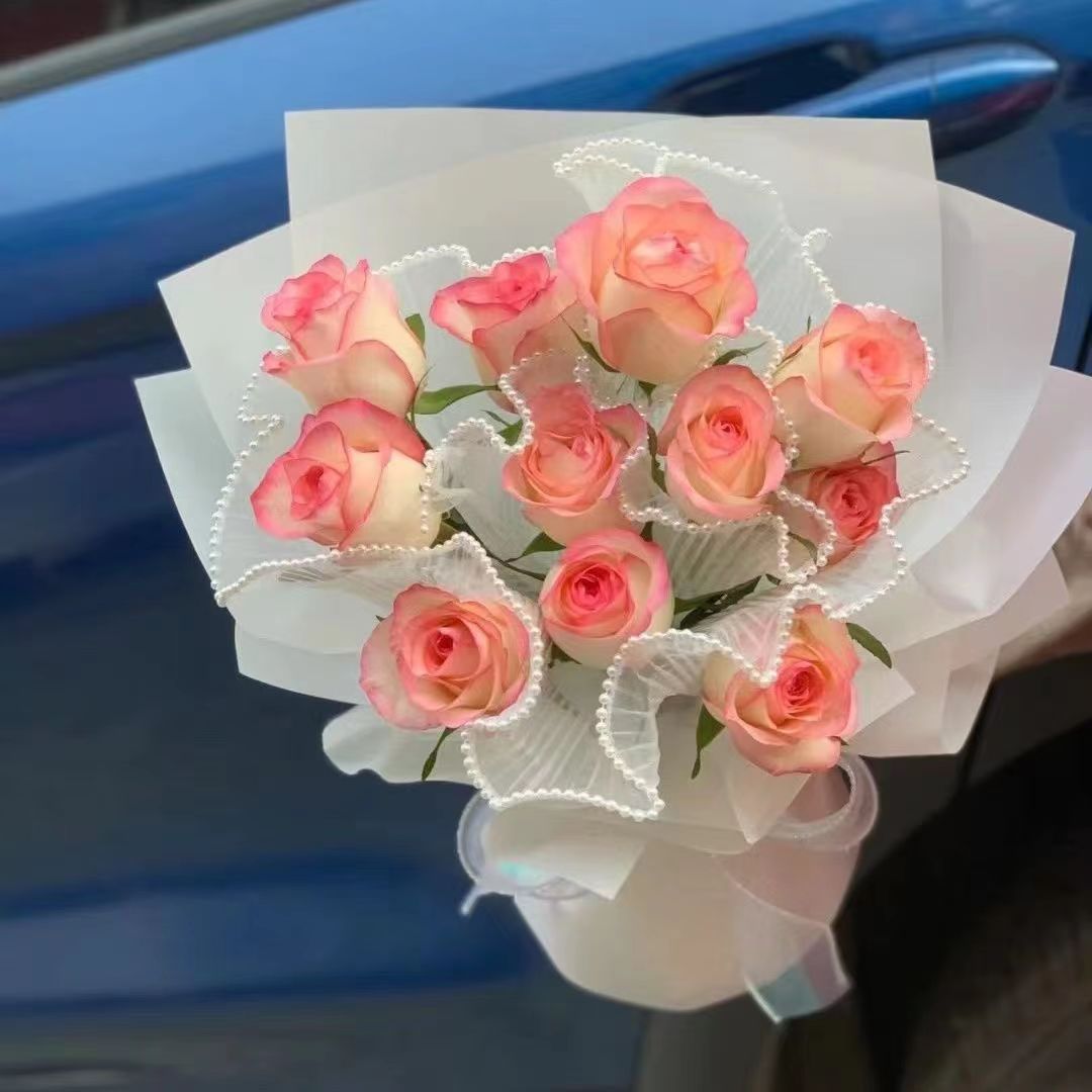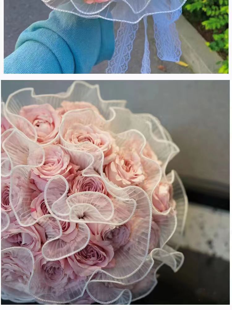 Perla de hilo de aerosol flor embalaje borde de la onda ramo de hilo DIY hornear decoración de la torta de la tienda de flores material al por mayor