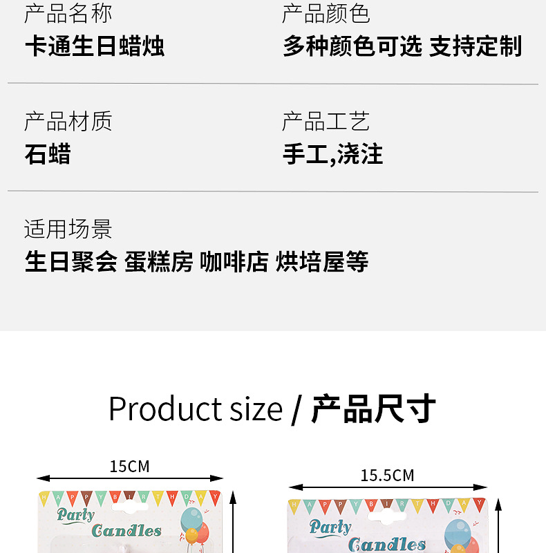 | Número de artículo | Vela de dibujos animados |
