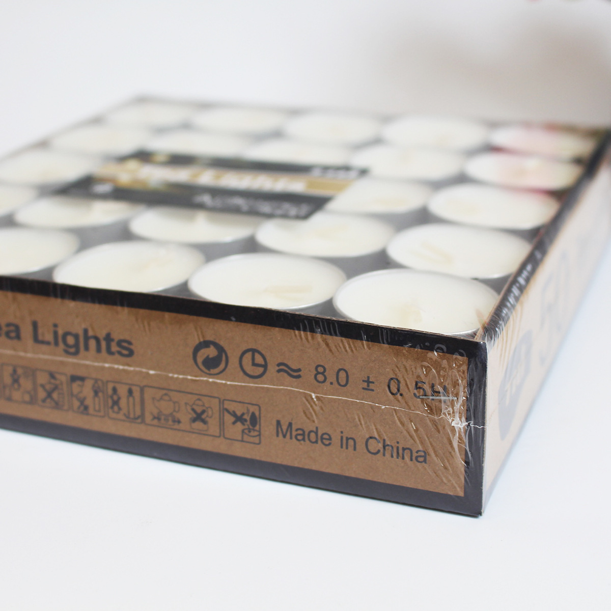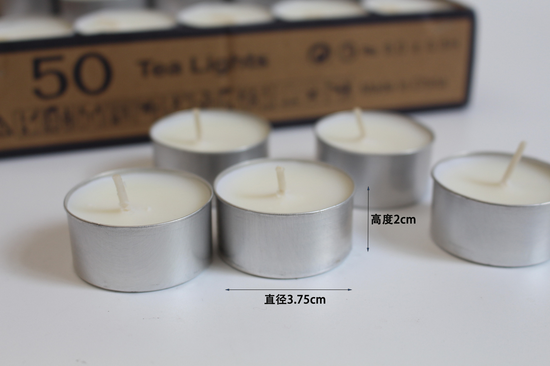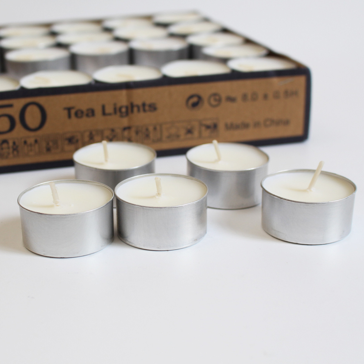 Velas de prevención de desastres de emergencia de quema duradera de 8 horas de cera de té hervida hotel de té 50 piezas de vela de té de aluminio redondo