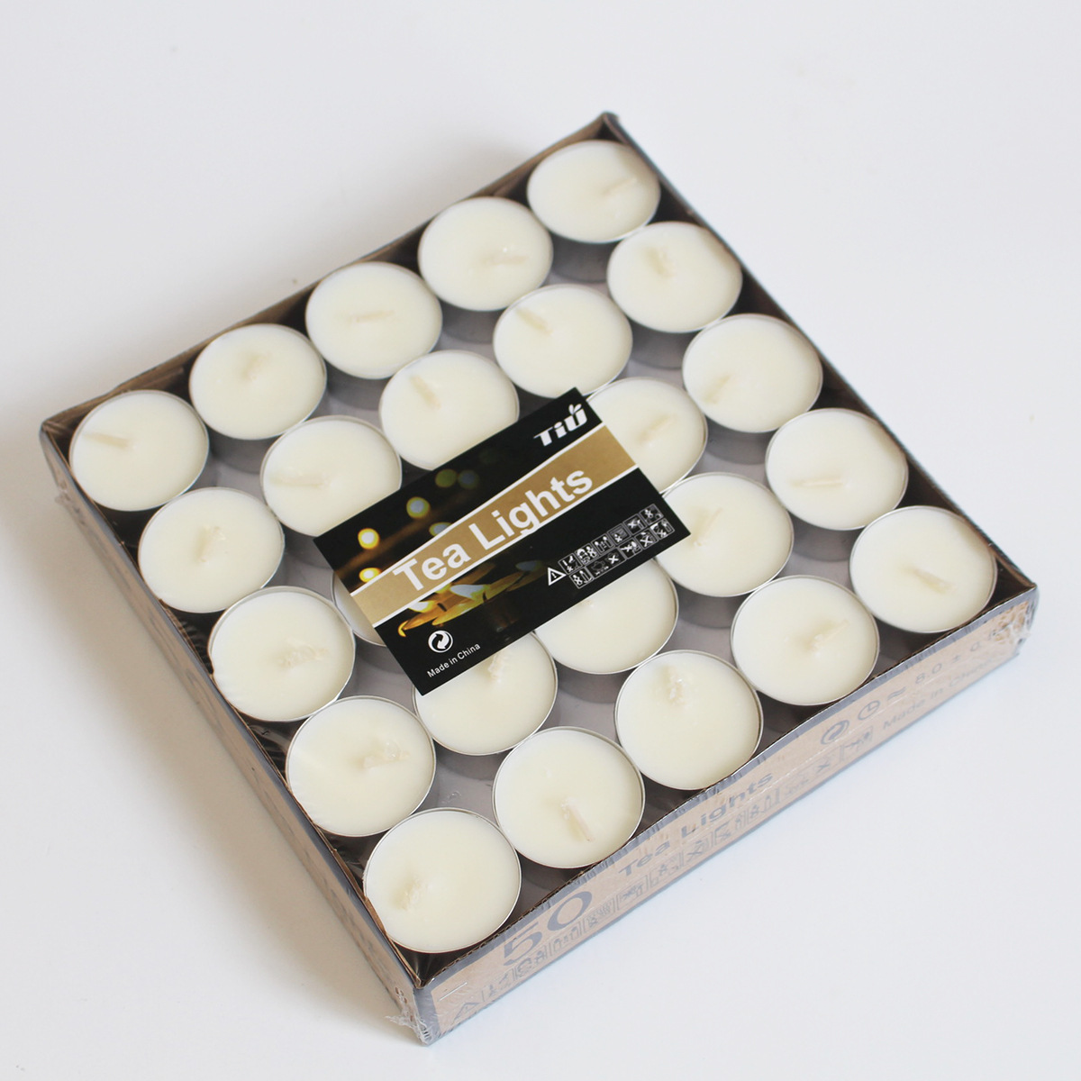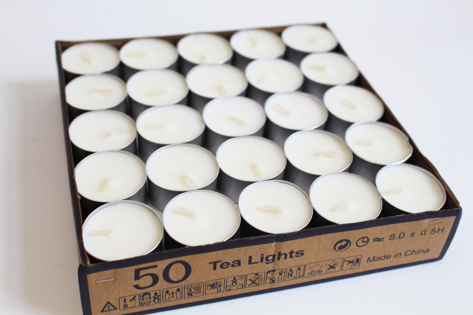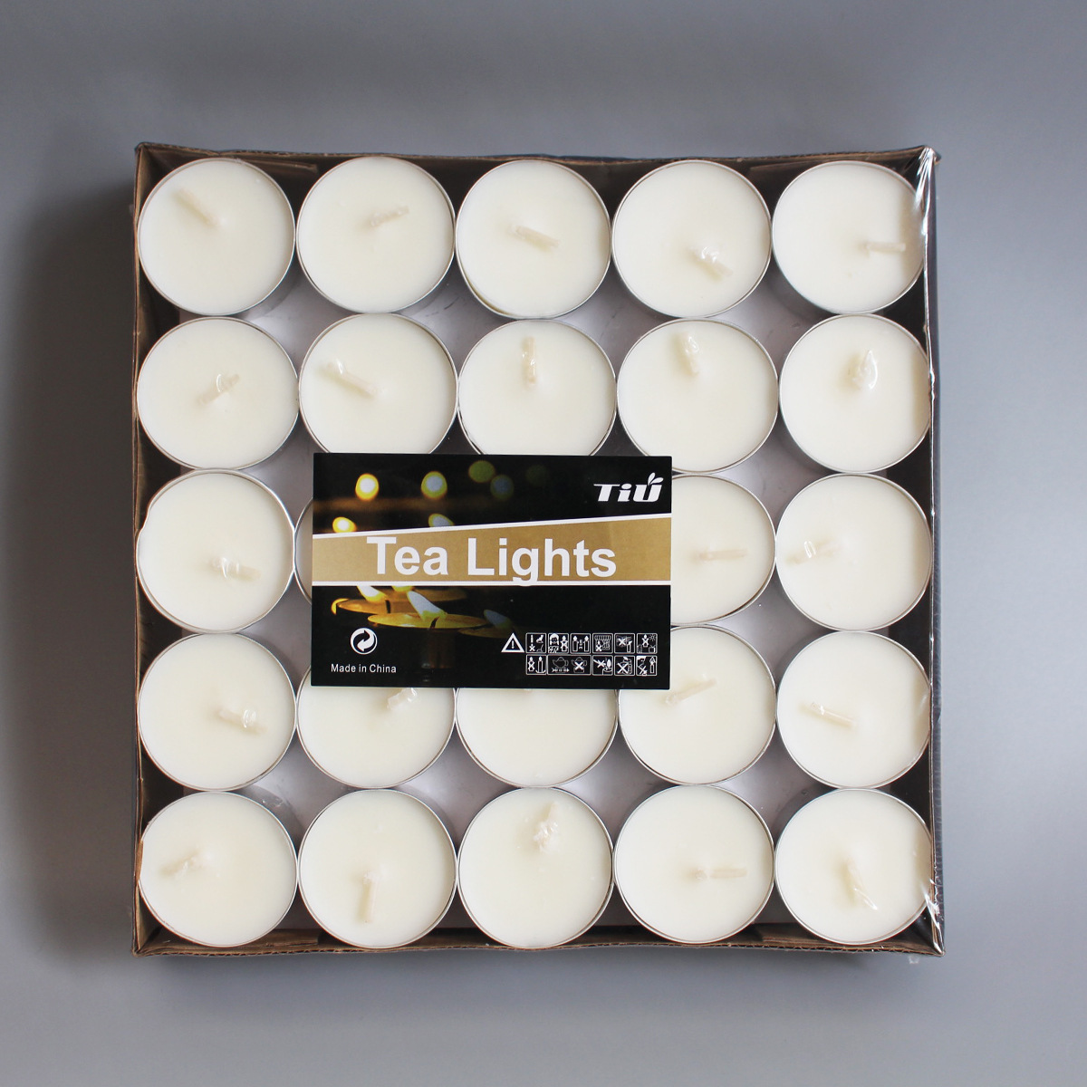 Velas de prevención de desastres de emergencia de quema duradera de 8 horas de cera de té hervida hotel de té 50 piezas de vela de té de aluminio redondo