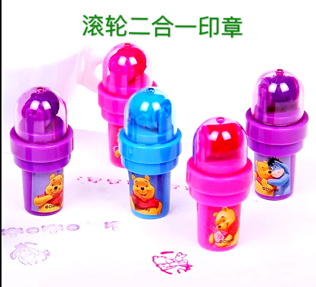 Nuevo japonés y coreano lindo niños de dibujos animados patrón de color sello de plástico rodillo de juguete sello de papelería