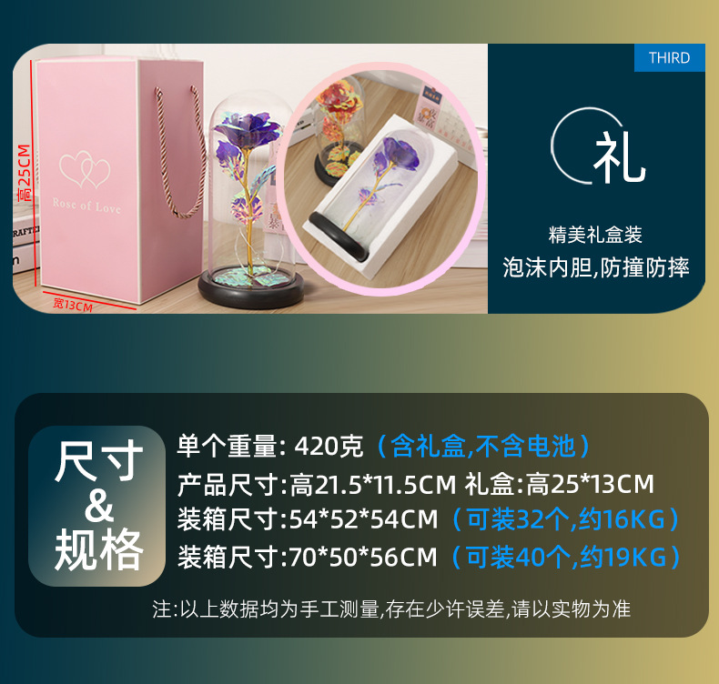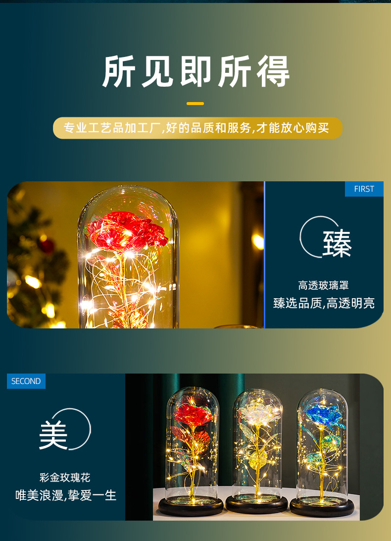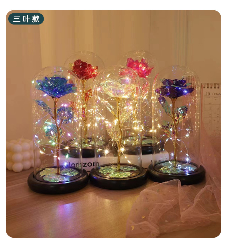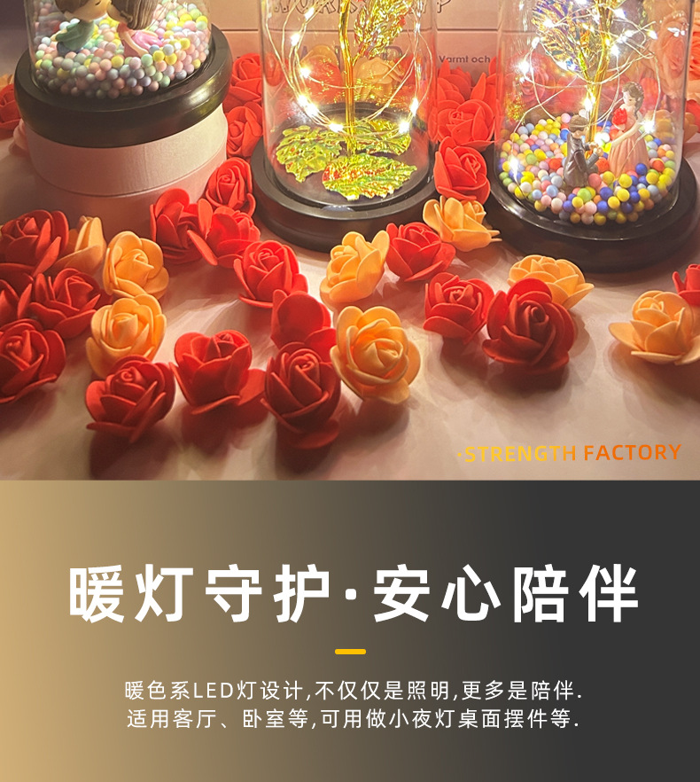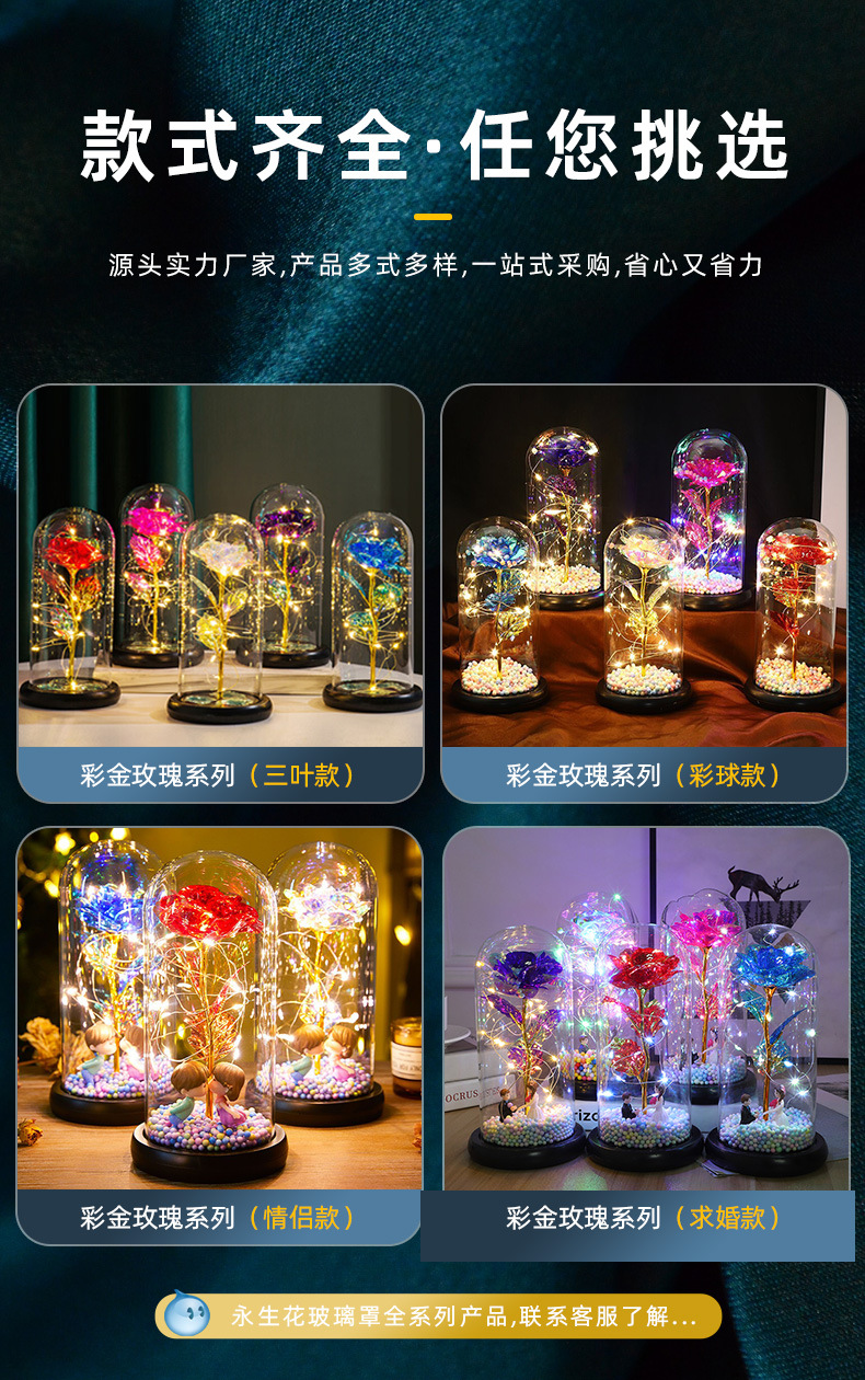 Flor inmortal rosa lámpara de vidrio Qixia Día de San Valentín 520 regalos de flores simuladas adornos de regalo para la madre para la novia