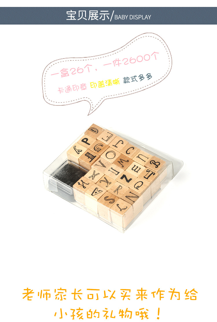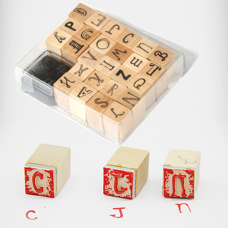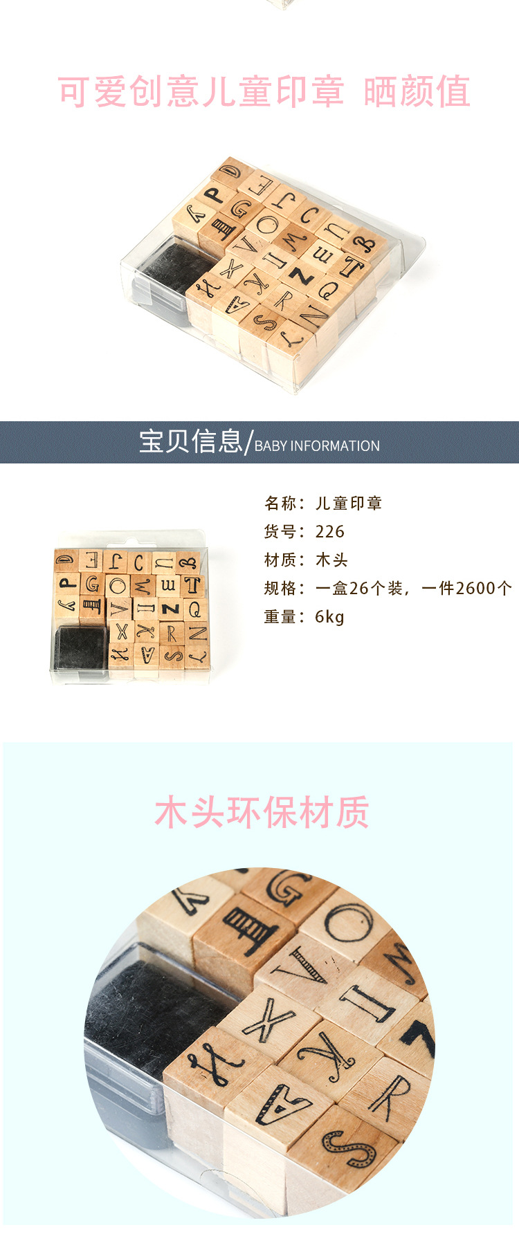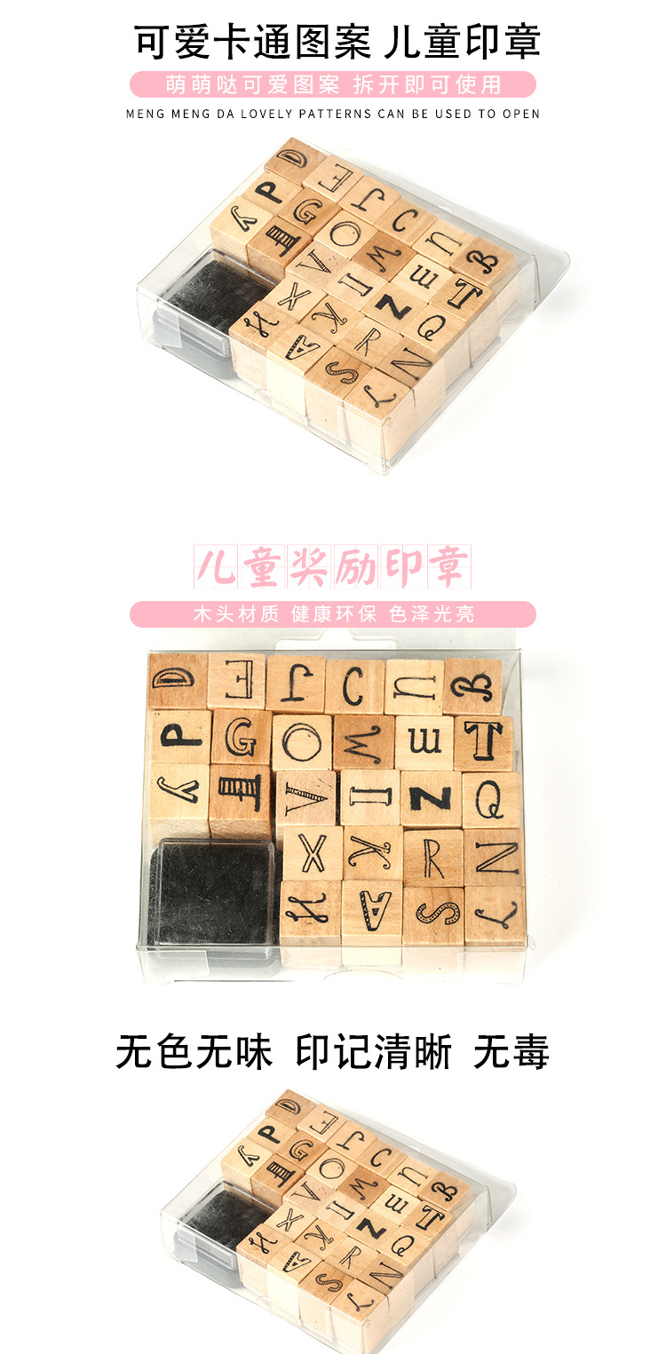 Sello de madera de los niños creativos de fábrica con inkpad carta personalizada traje de sello de madera al por mayor