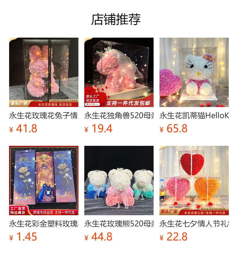 Oso de rosas de flores eternas, Día de San Valentín chino, Día de la Madre, regalo de floristería para novia, pequeño regalo de cumpleaños, flor de espuma artificial.
