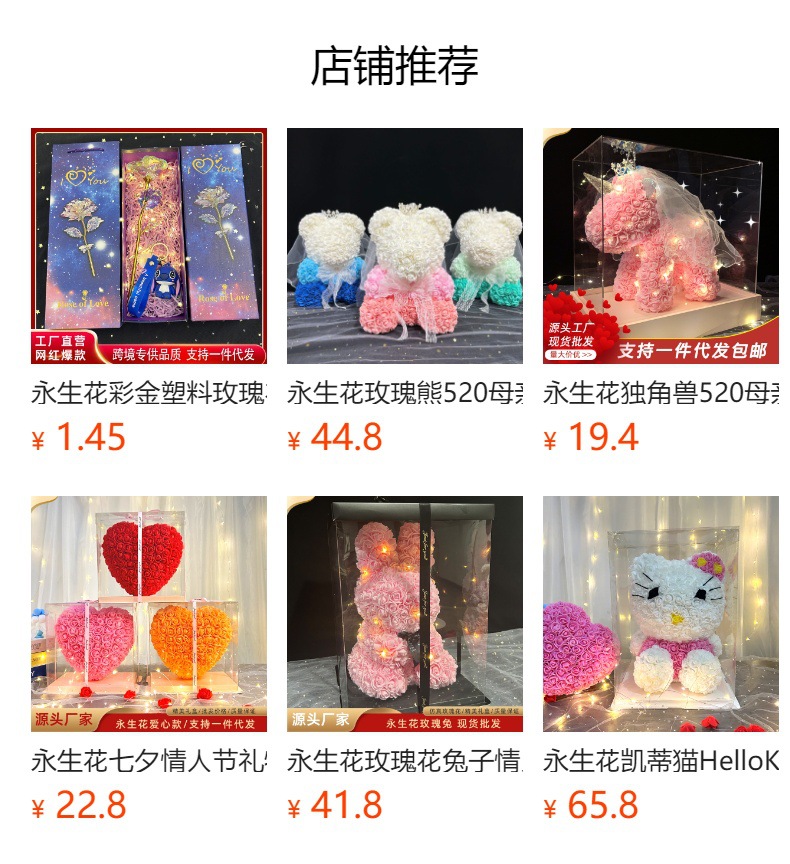 Oso de rosas eternas, regalo para el Día de San Valentín chino, regalo para el Día de la Madre, oso de espuma de flores de PE simuladas, adorno de regalo creativo.
