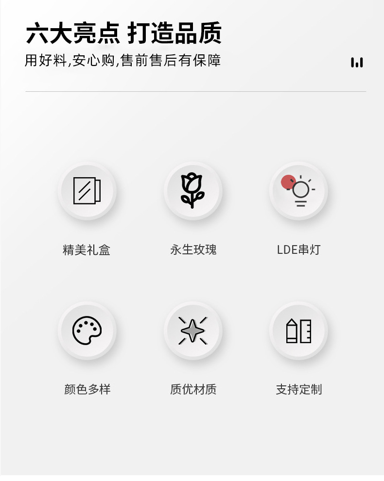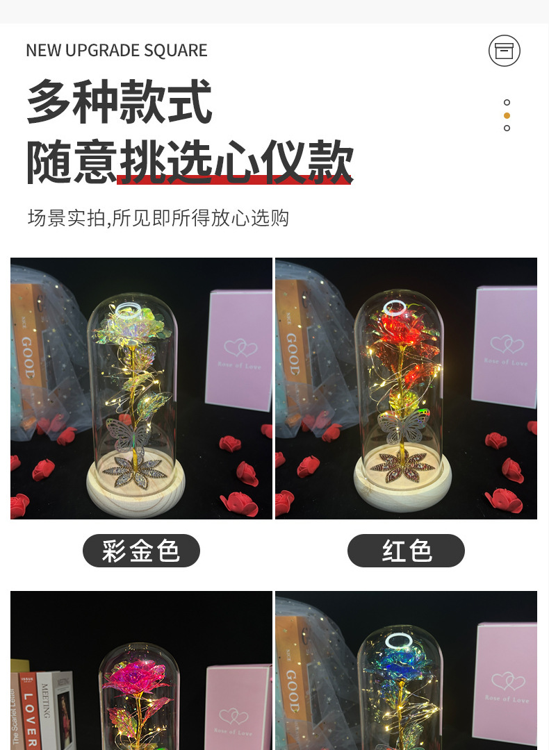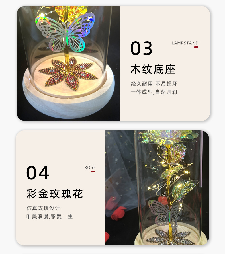 | Especificaciones | Cubierta de vidrio + luces de cadena LED + traje de caja de regalo,Acrílico + LED luces de cadena + caja de regalo traje |