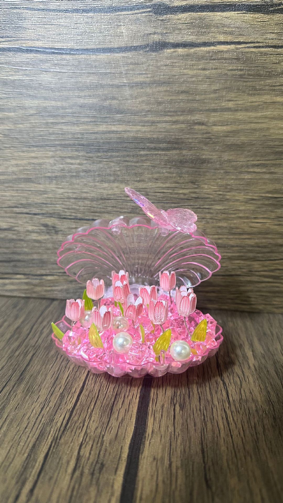 Luz de noche de flor de concha transparente, bricolaje hecho a mano, mesita de noche, luz ambiental, decoración luminosa para novia