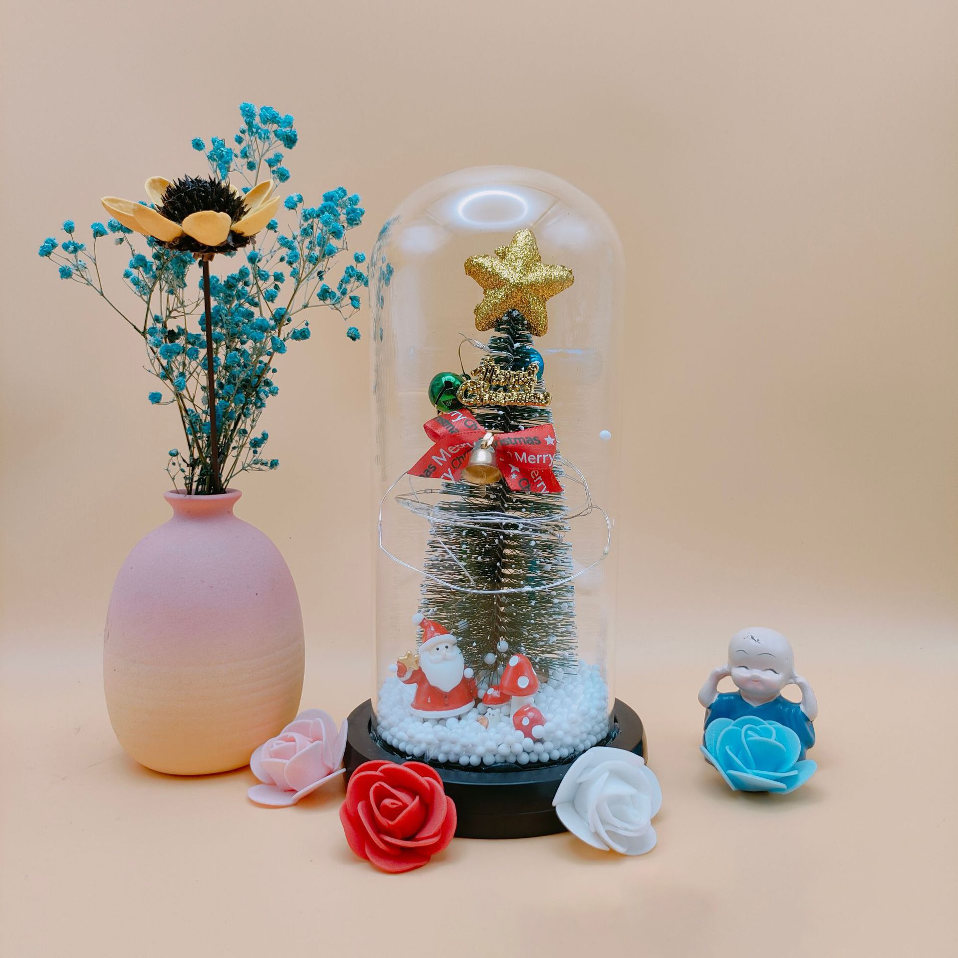 Lámpara de cristal con flores preservadas, rosa artificial brillante, árbol de Navidad, día de San Valentín, Papá Noel, reno, adorno navideño creativo
