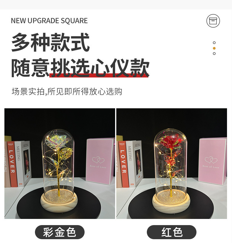 Adorno de cúpula de cristal con flor preservada, rosa seca en caja de regalo, regalo creativo para el Día de San Valentín, Navidad, para novia