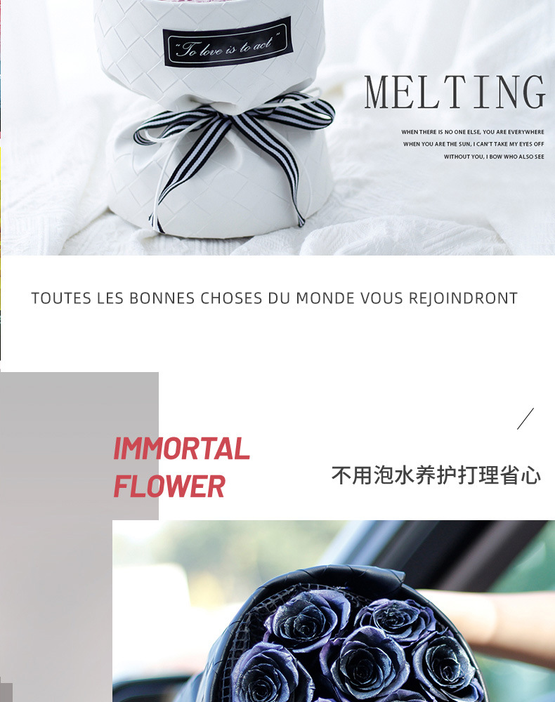Ciruela negra, flores de flores, regalos de día de San Valentín, regalos de cumpleaños al por mayor, flores verdaderas, flores inmortales, flores de flores, sensación superior.