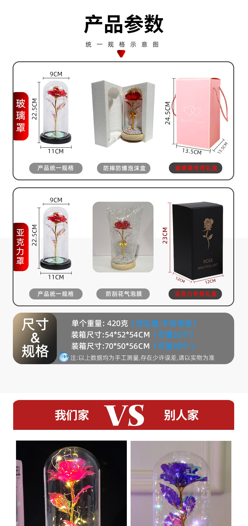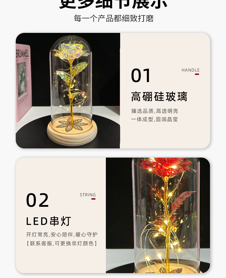 | Especificaciones | Cubierta de vidrio + luces de cadena LED + traje de caja de regalo,Acrílico + LED luces de cadena + caja de regalo traje |
