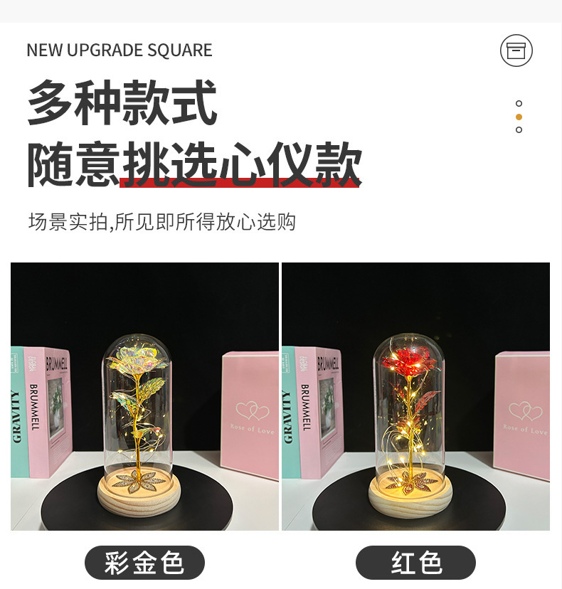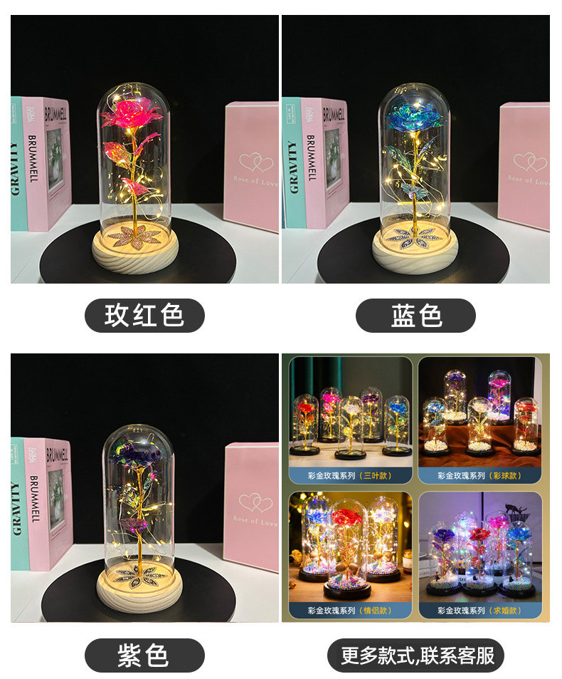 Lámpara de Cristal con Rosa Preservada, Regalo para el Día de San Valentín Chino, 520, Producto Terminado al por Mayor, Adorno Creativo para Regalo Pequeño