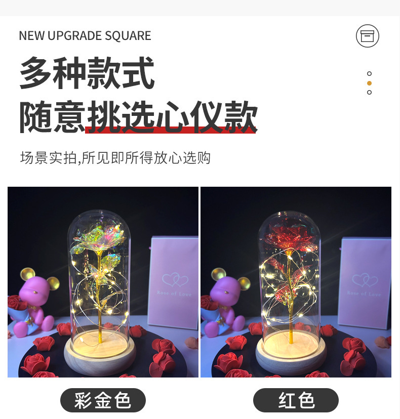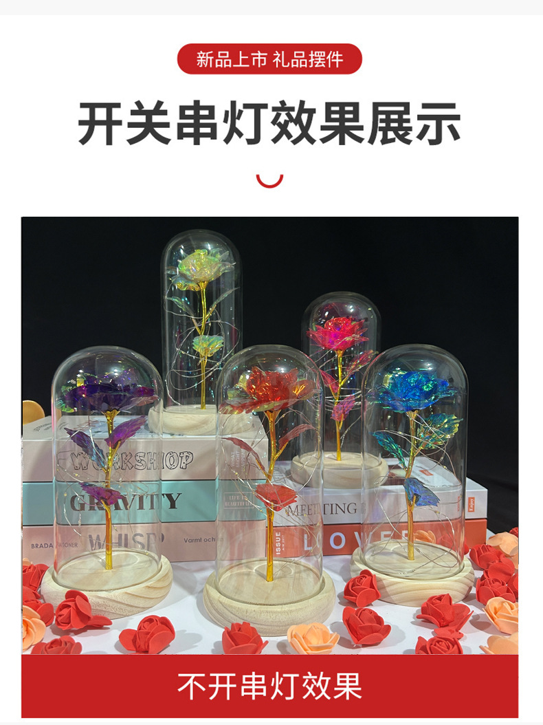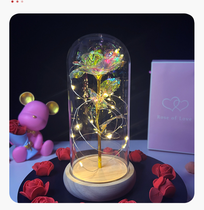 Cubierta de Cristal con Rosa en Papel de Oro 520, Regalo para el Día de la Madre, Día de San Valentín, Flor Eterna, Luz Nocturna Brillante, Adorno Creativo