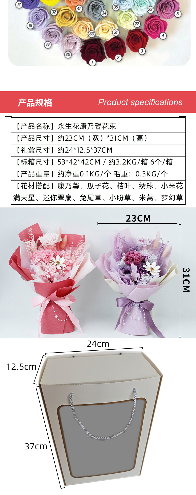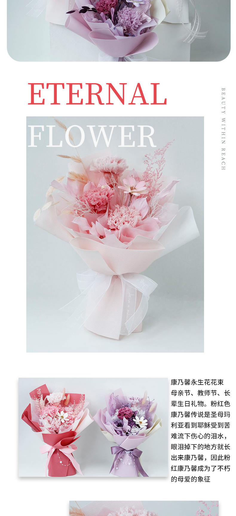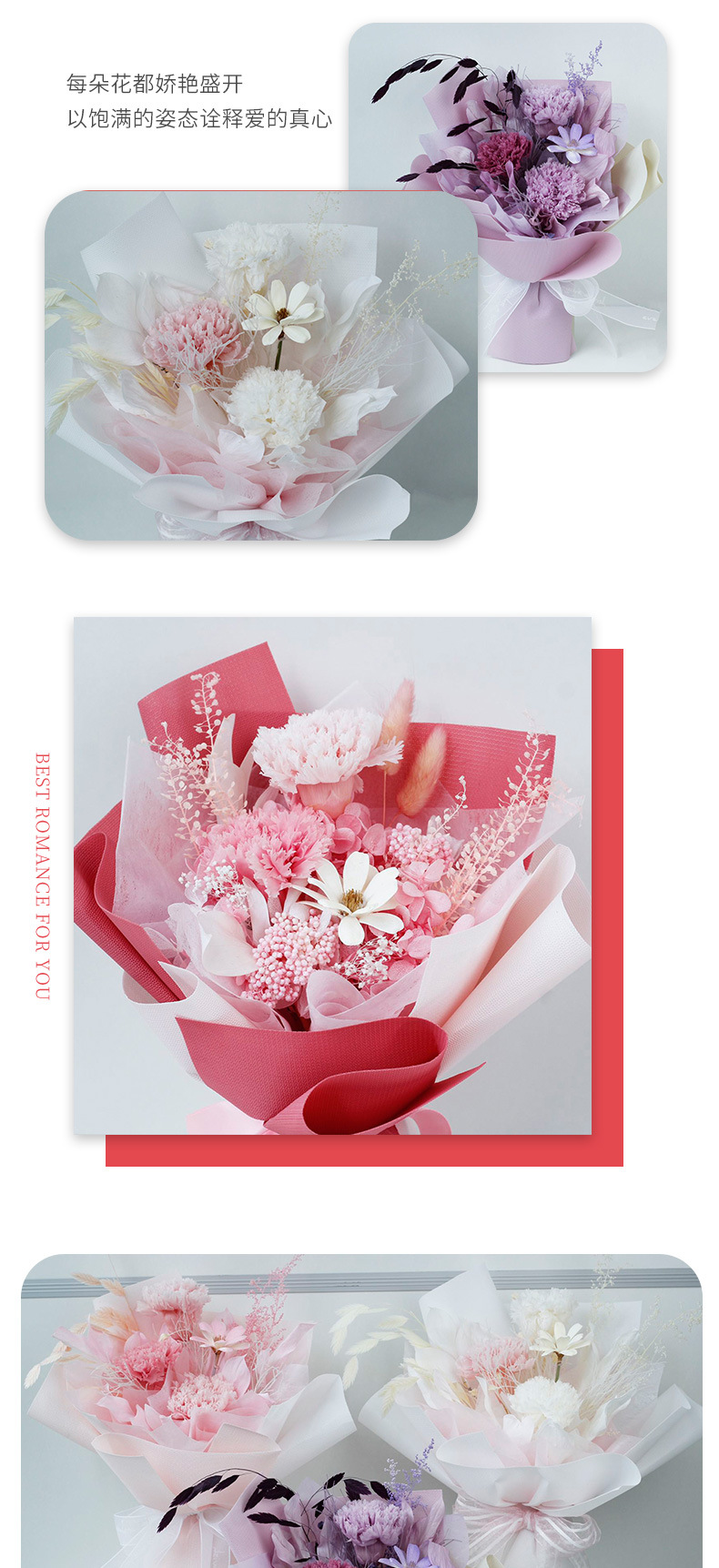 Día de la Madre amazónico flores secas flores verdaderas flores eternas flores de regalo bouquet de claveles bouquet