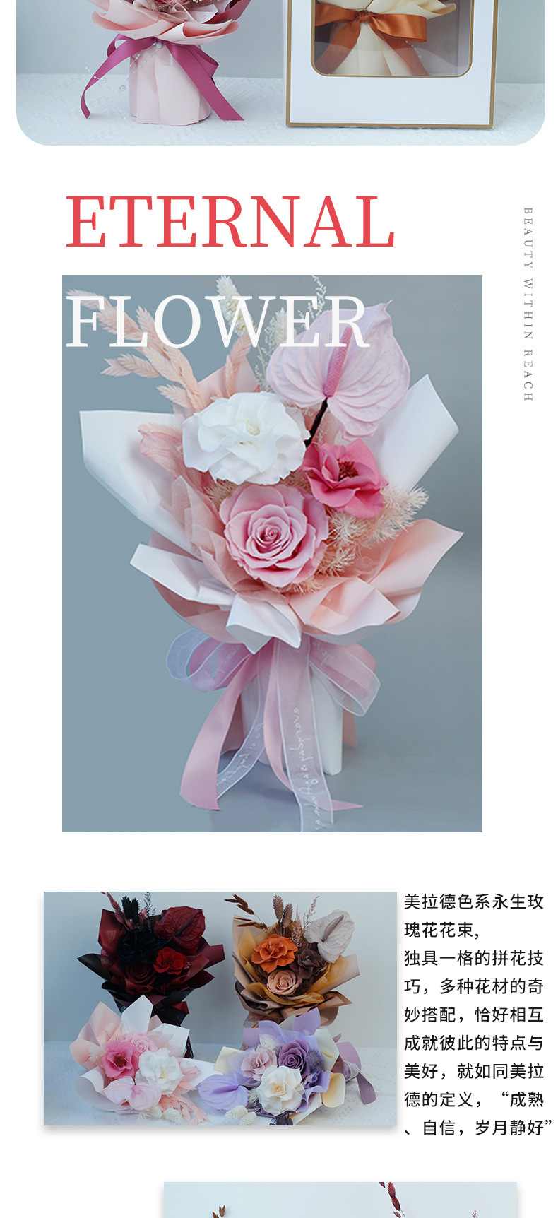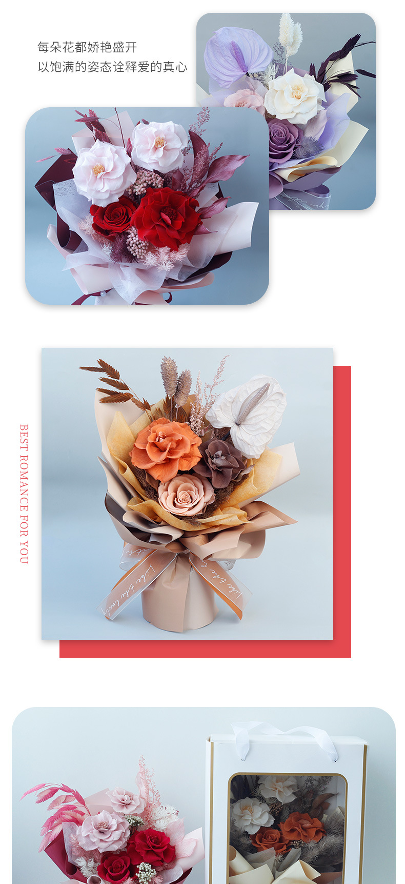 Regalo de San Valentín de Amazon, Mermelada de Ciruela, Rosa, Flor Seca, Ramo de Flores Preservadas de Alta Gama, Producto Terminado, Transfronterizo