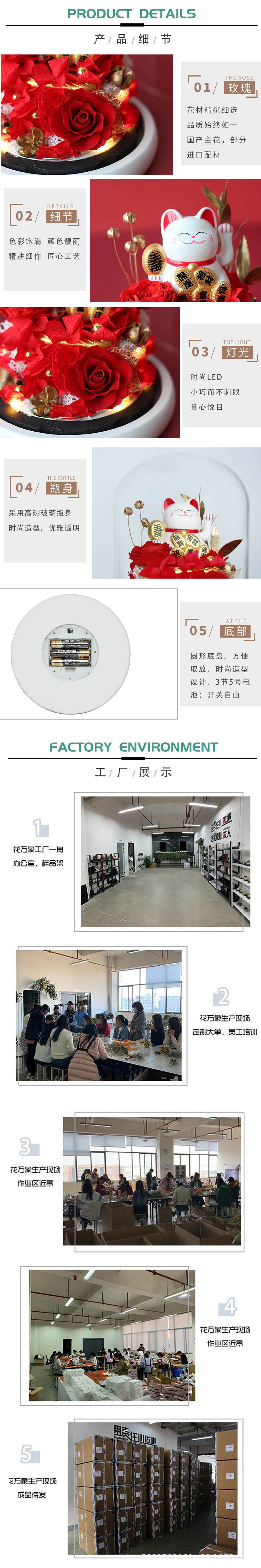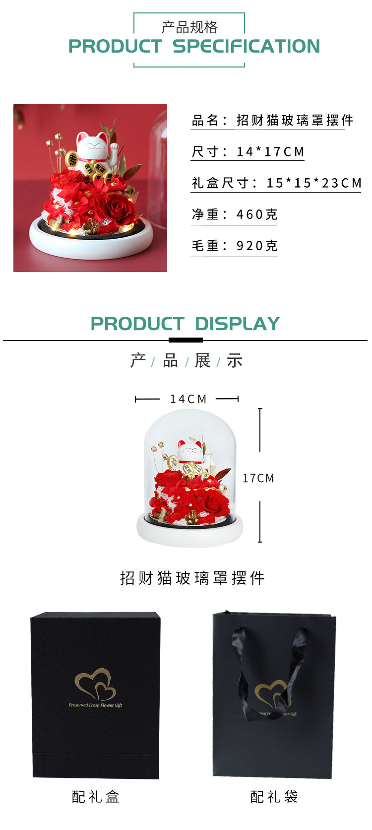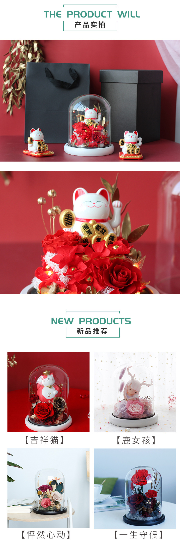 Regalo del Día de San Valentín muñeca cerámica hecha a mano Rose Lucky CAT cubierta cristal decoración al por mayor la Flor Eterna producto terminado