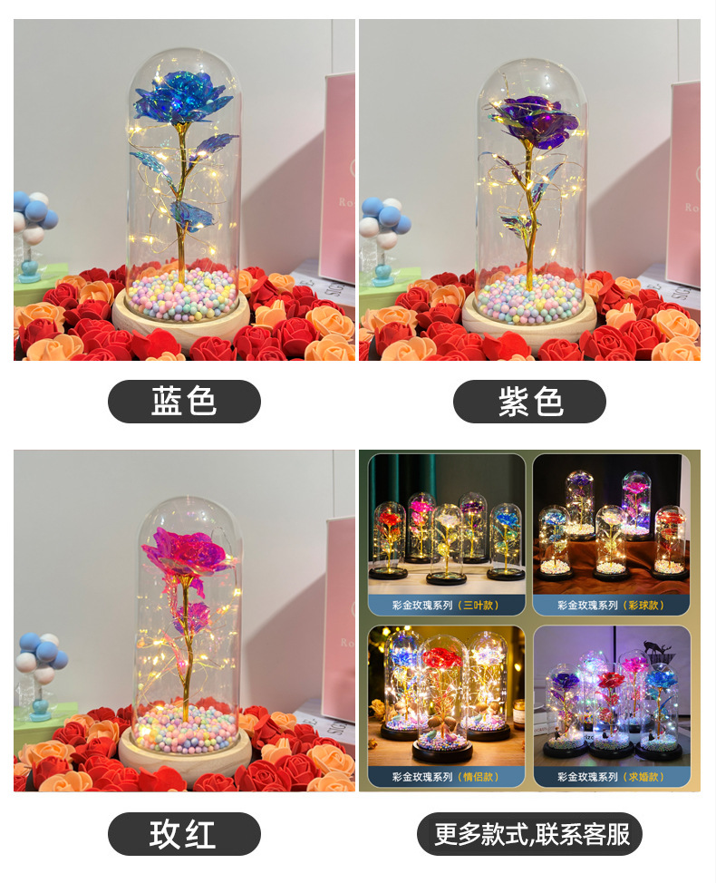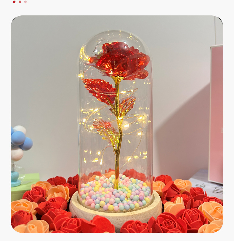 Flor inmortal cubierta de vidrio dorada de flores de la noche lámpara 520 regalos de día de San Valentín mariposa LED decoración de mesa