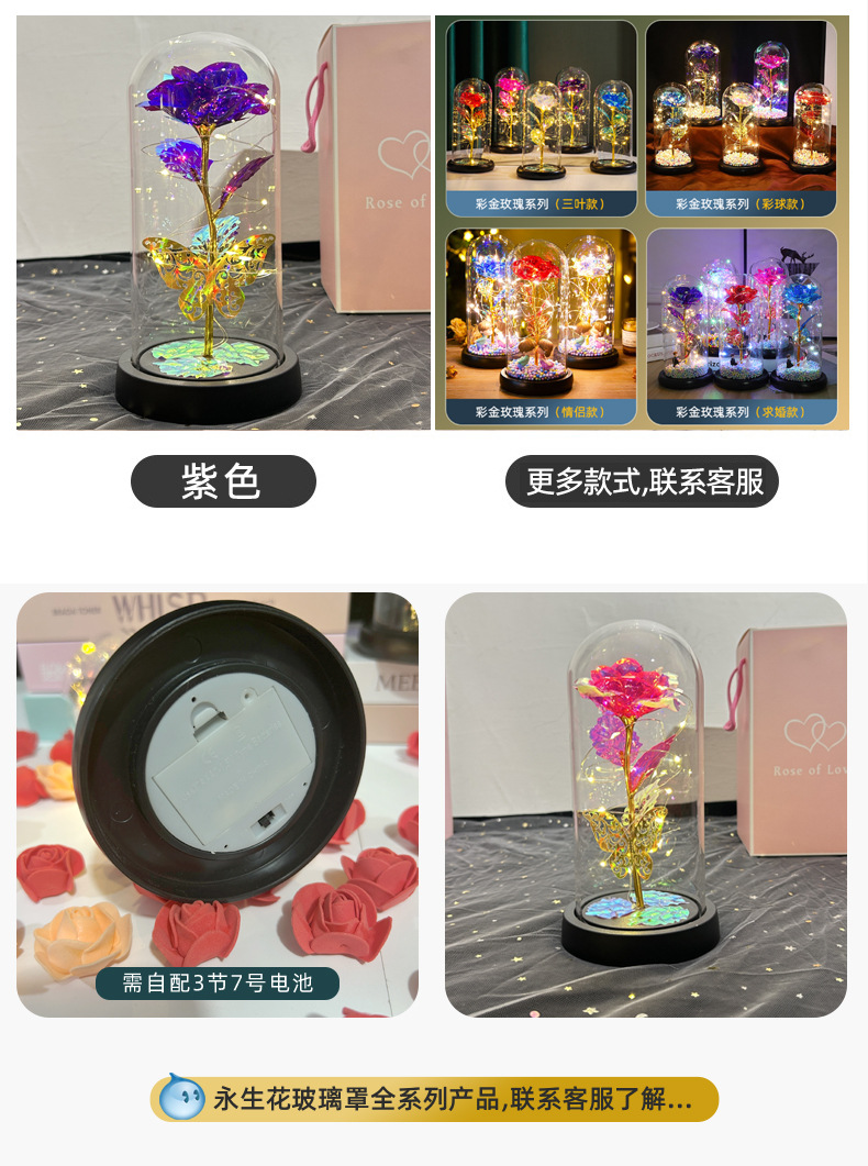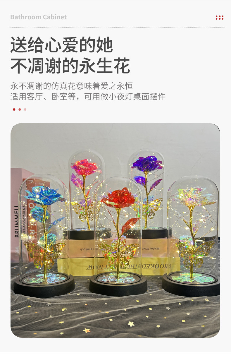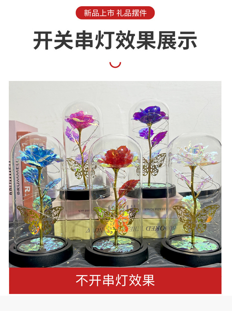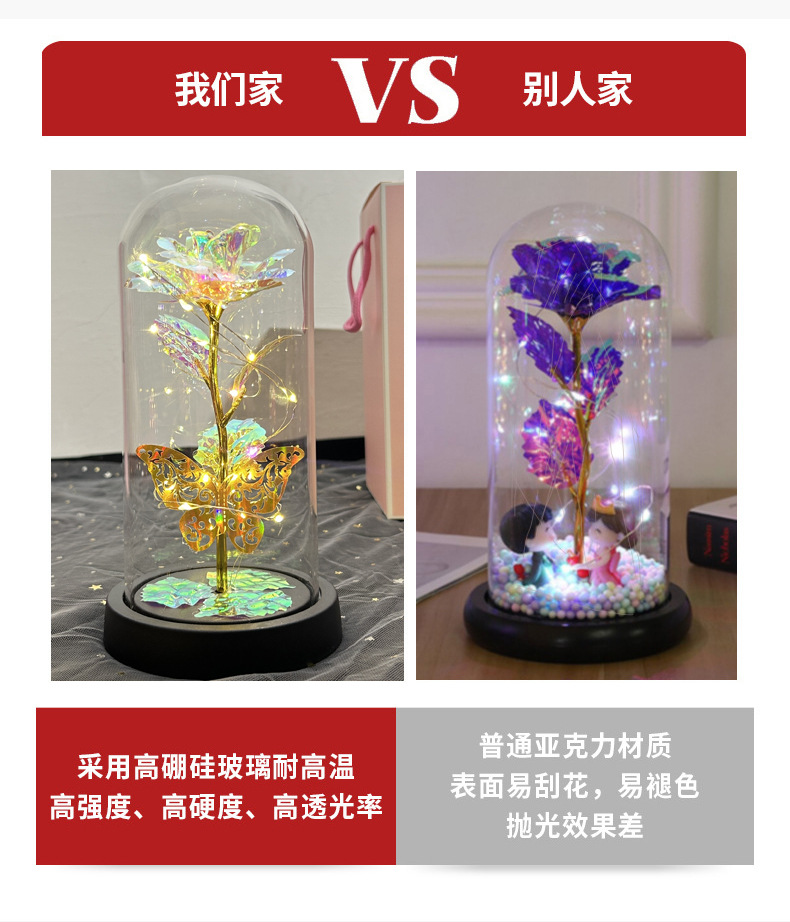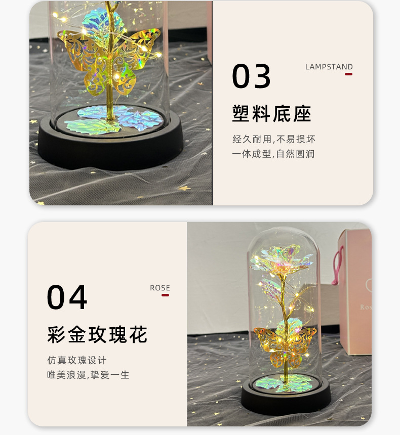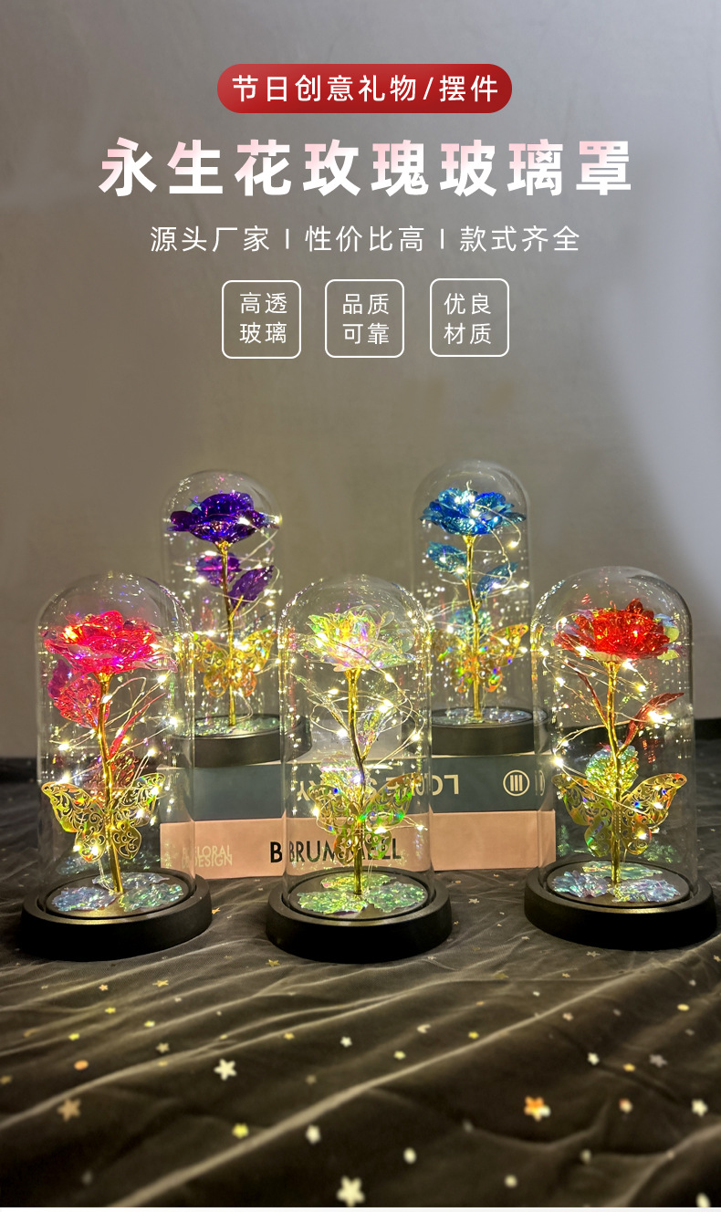 Flores de la vida eterna cubierta de vidrio brillante de oro flores de Navidad regalos de día de San Valentín creativo decoración de luces nocturnas transfronterizas