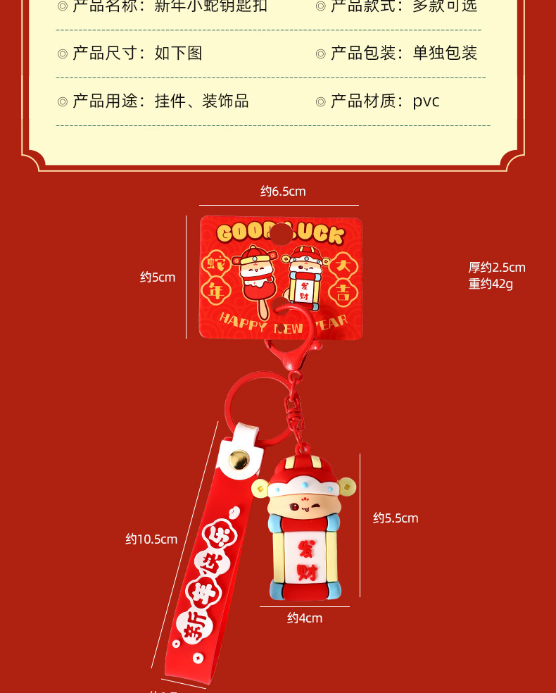 Caricatura de Año Nuevo Serpiente Año Nuevo Serpiente dorada para enviar serpiente mascota de Año Nuevo colgante de regalo de tendencia nacional cadena de automóviles
