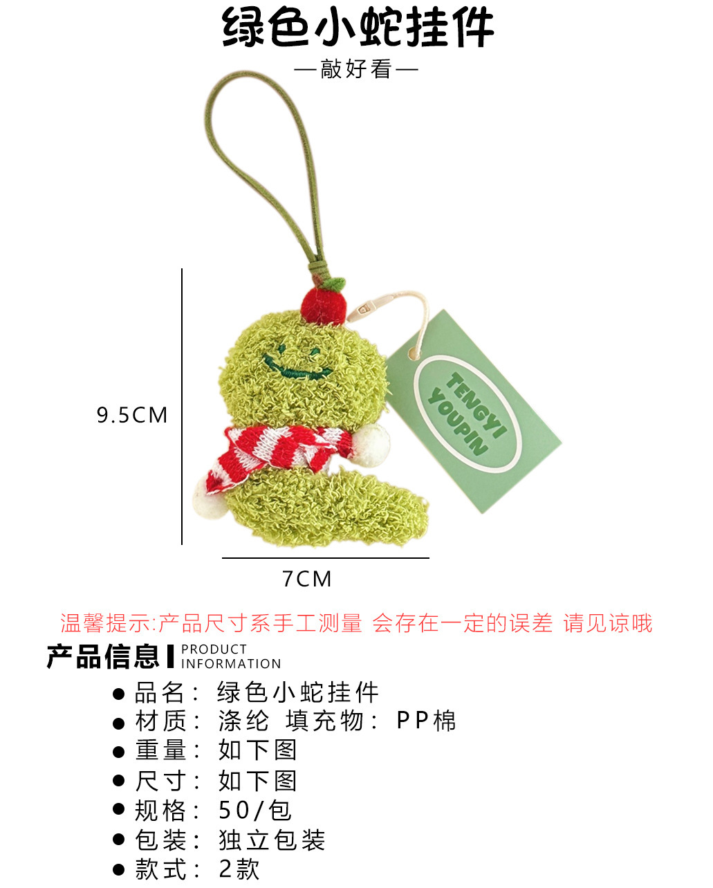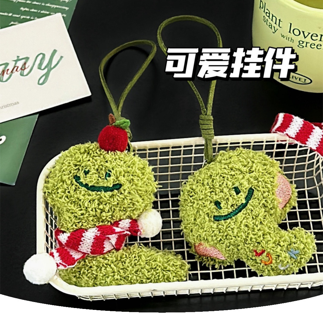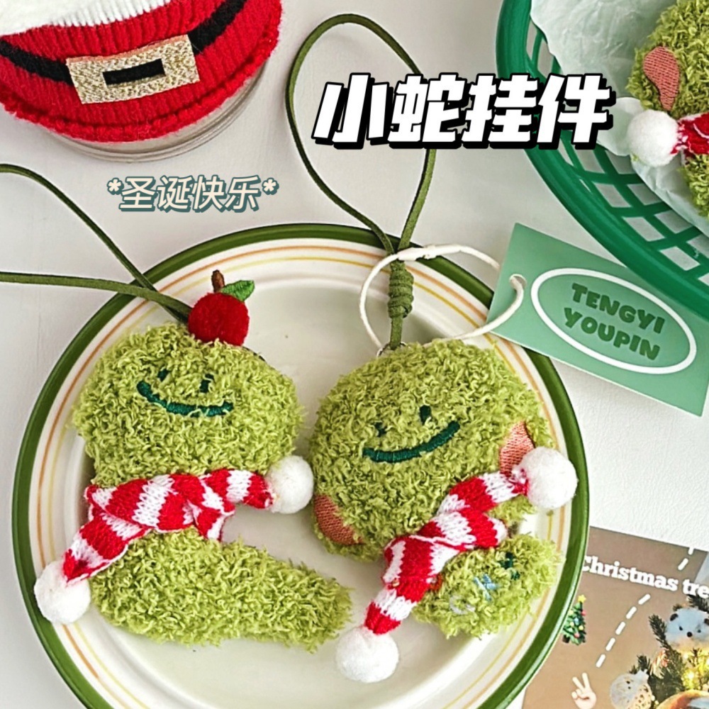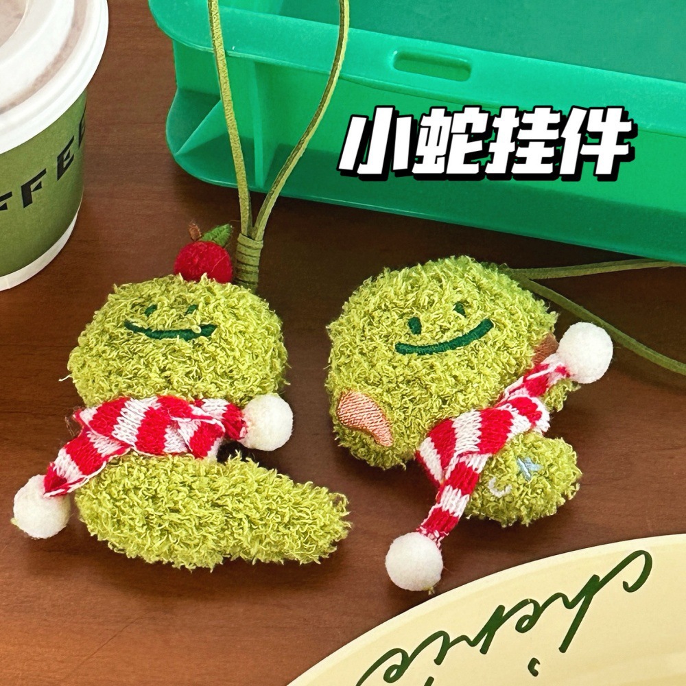 Año de la serpiente verde pequeña joyería colgante de muñeca de peluche adorable corazón de una niña serpiente universal llavero