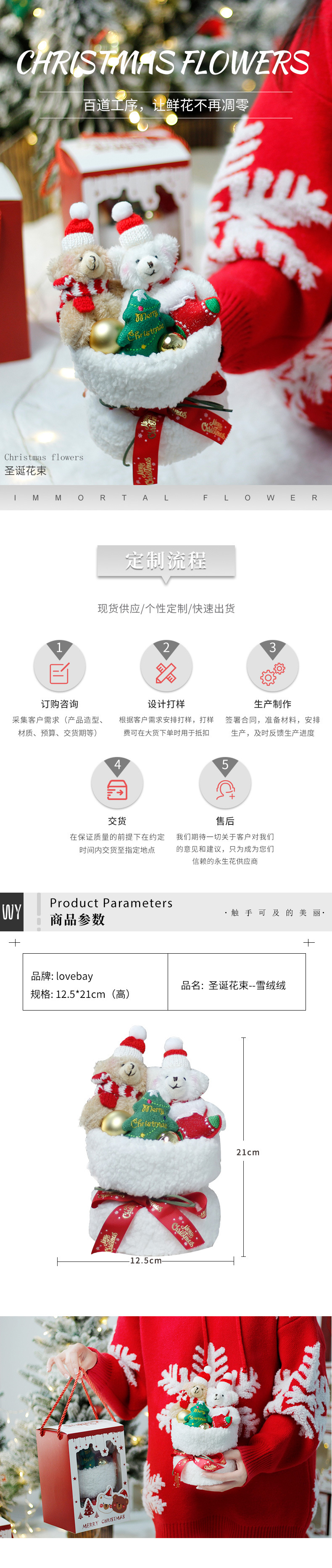 Navidad oso pequeño ramo de flores muñeca mano flores regalo de cumpleaños creativo para la novia flores de Navidad flores de inmortalidad