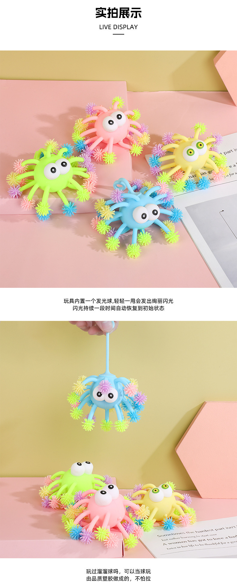 Juguetes de dibujos animados luminosos juguetes de niños luminosos ventiladores flash balls de pelo juguetes electrónicos juguetes descomprimidos
