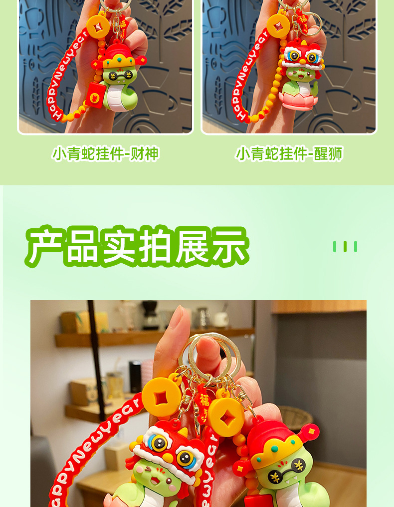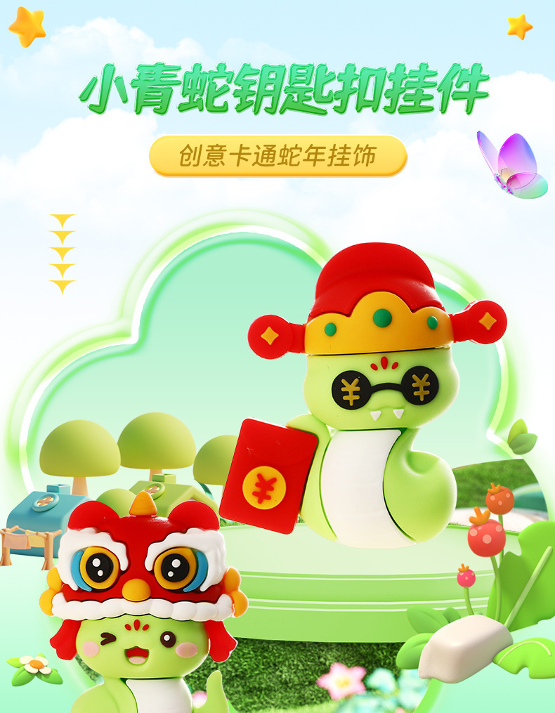 | Color | Caishen Little Green Snake (embalaje independiente), xingshi Little Green Snake (embalaje independiente), New Year Happy Gold Snake (embalaje independiente), China nudo Gold Snake (embalaje independiente), caishen Yellow Snake (embalaje independiente), xingshi Yellow Snake (embalaje independiente), China nudo red Snake (embalaje independiente), New Year Happy red Snake (embalaje independiente), Lighting caishen llavero (embalaje independiente) |