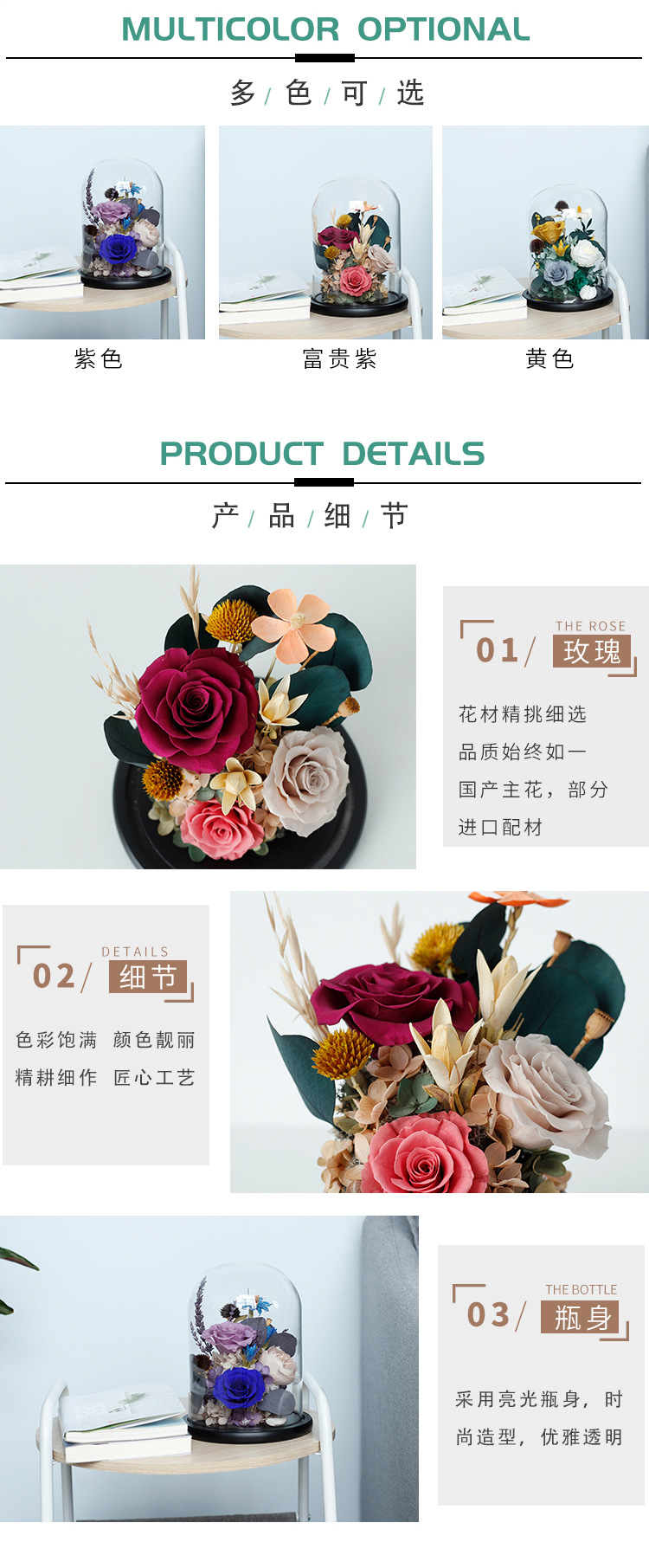 Yunnan inmortalidad flor japonesa cubierta de vidrio tricolor rosa pequeña flor del príncipe tiempo flores secas regalos de San Valentín al por mayor