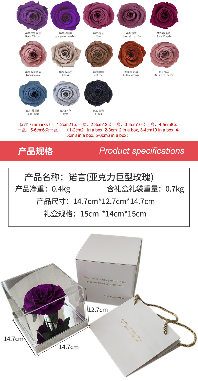 Flor preservada, producto terminado, rosa gigante acrílica, flor real al por mayor, regalo de San Valentín para novia, degradado cielo estrellado