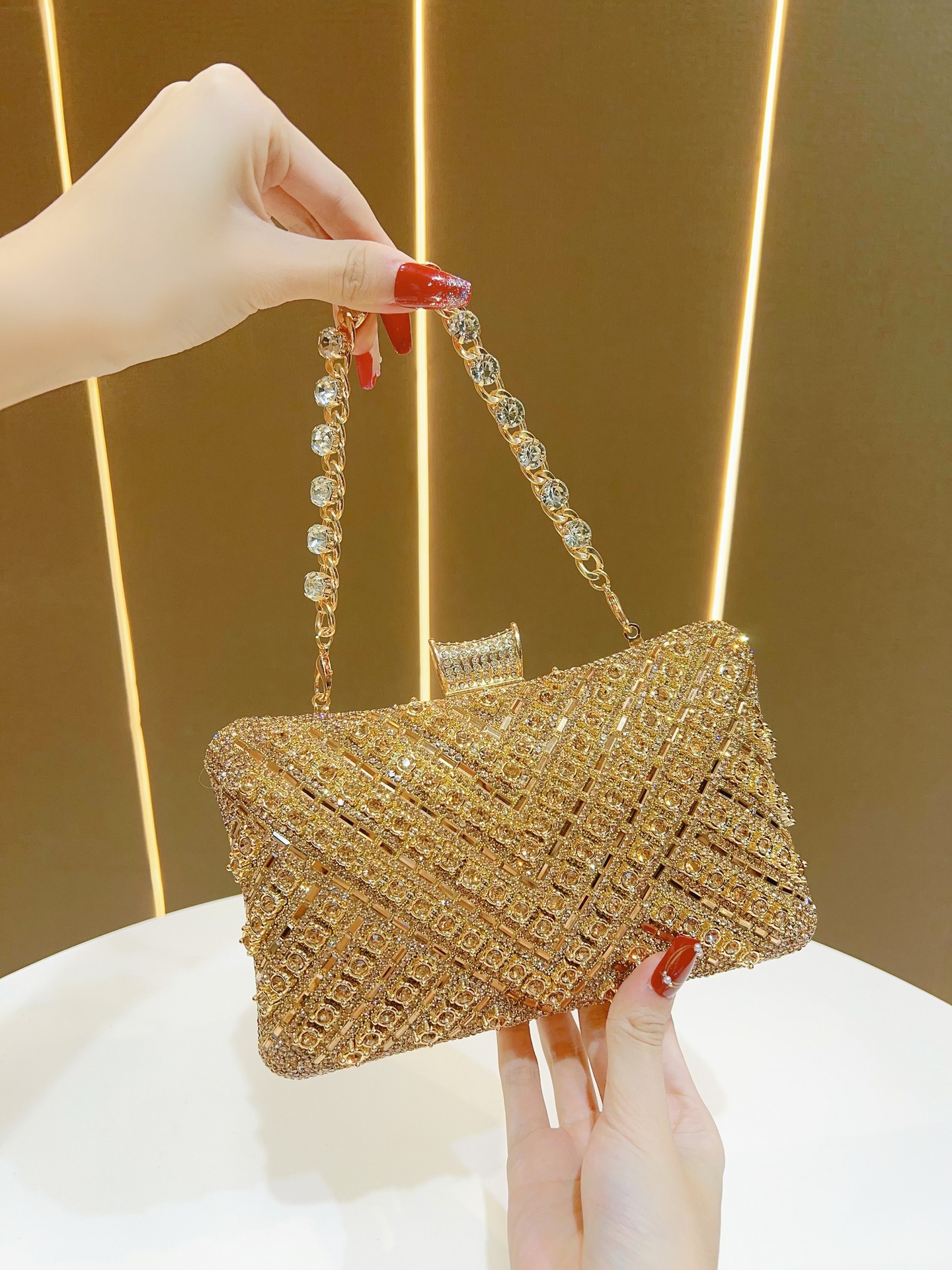 Bolso de mensajero de hombro para fiesta de mujer personalizado, bolso de almacenamiento, bolso de mano exquisito para banquete de bodas, bolso de cena de diamantes completos