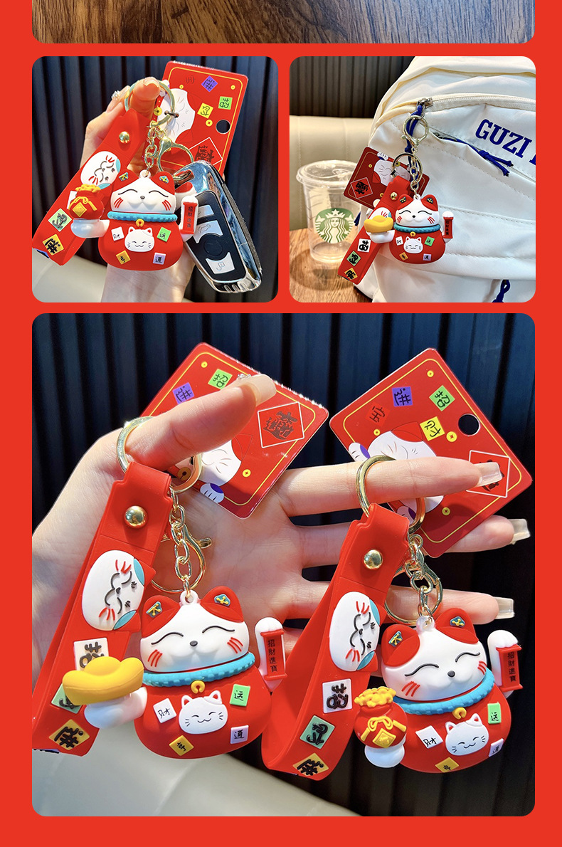Yuan Baofu bolsas Zhao Cai gatos llaveros girar Le Zhao Cai Jinbao llaveros de automóviles bolsos colgantes pequeños regalos