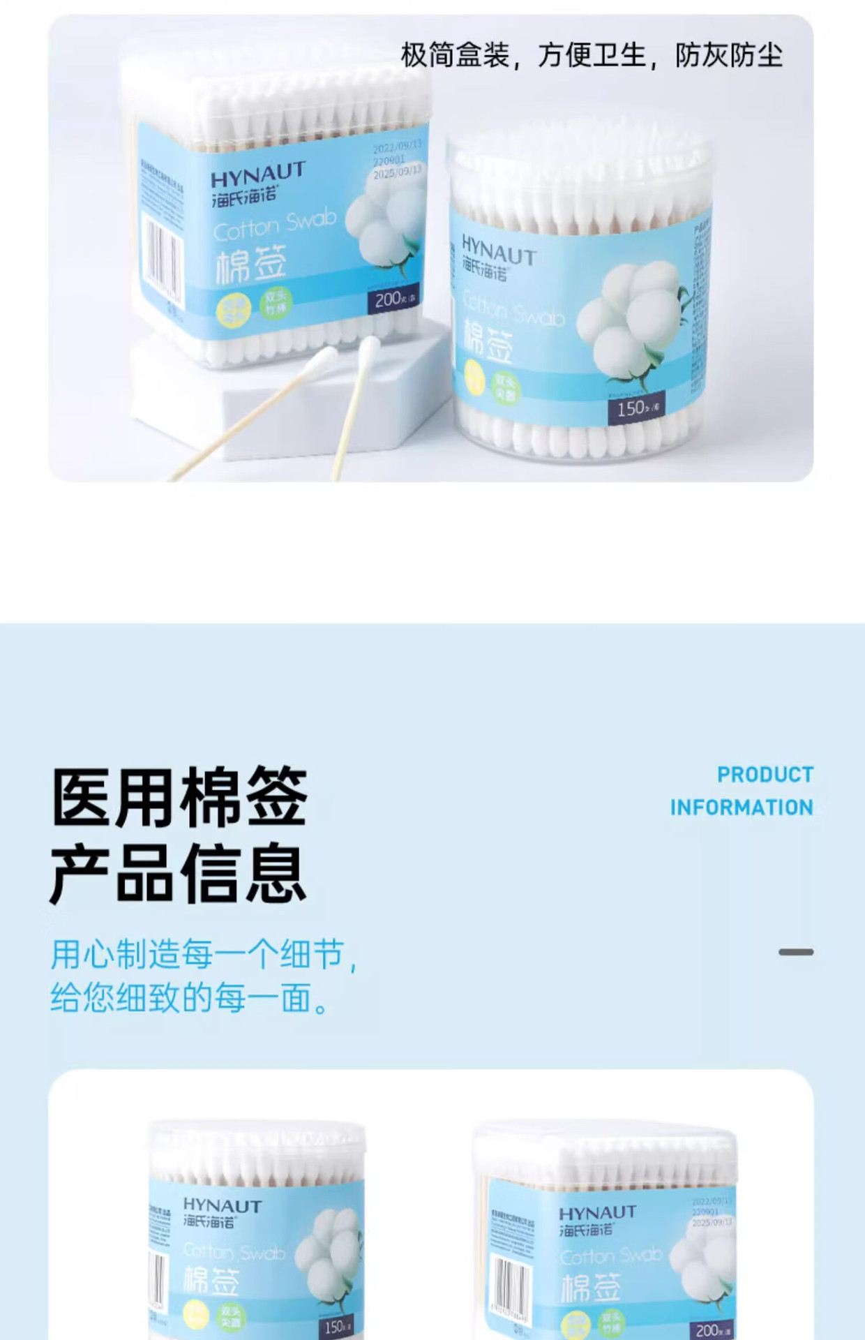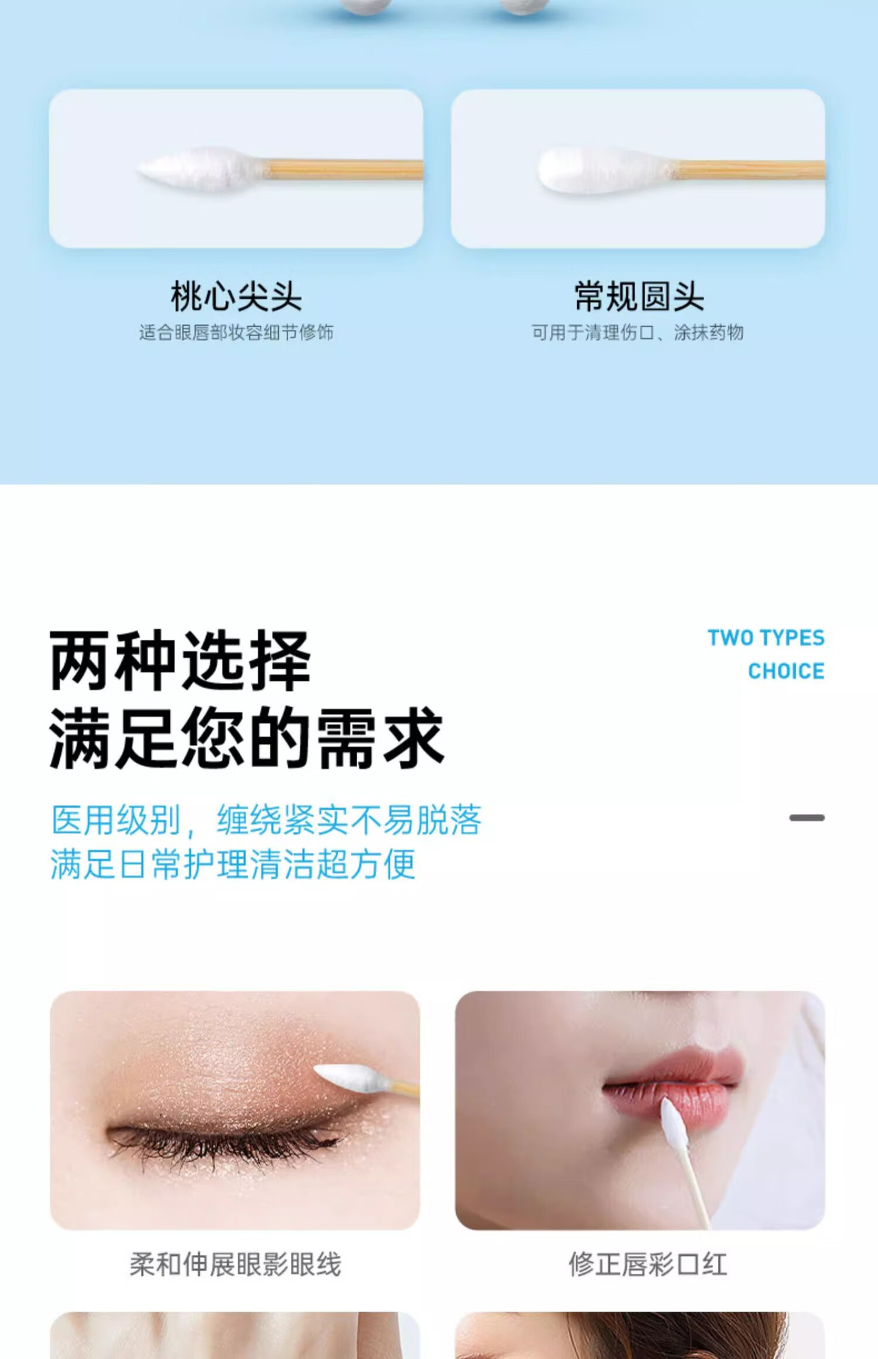 Heishi Heino, tampones de algodón de doble cabeza, 100 pcs / barril, limpieza de punta, cabeza redonda, cosméticos, cosméticos para oídos, medicina desechable