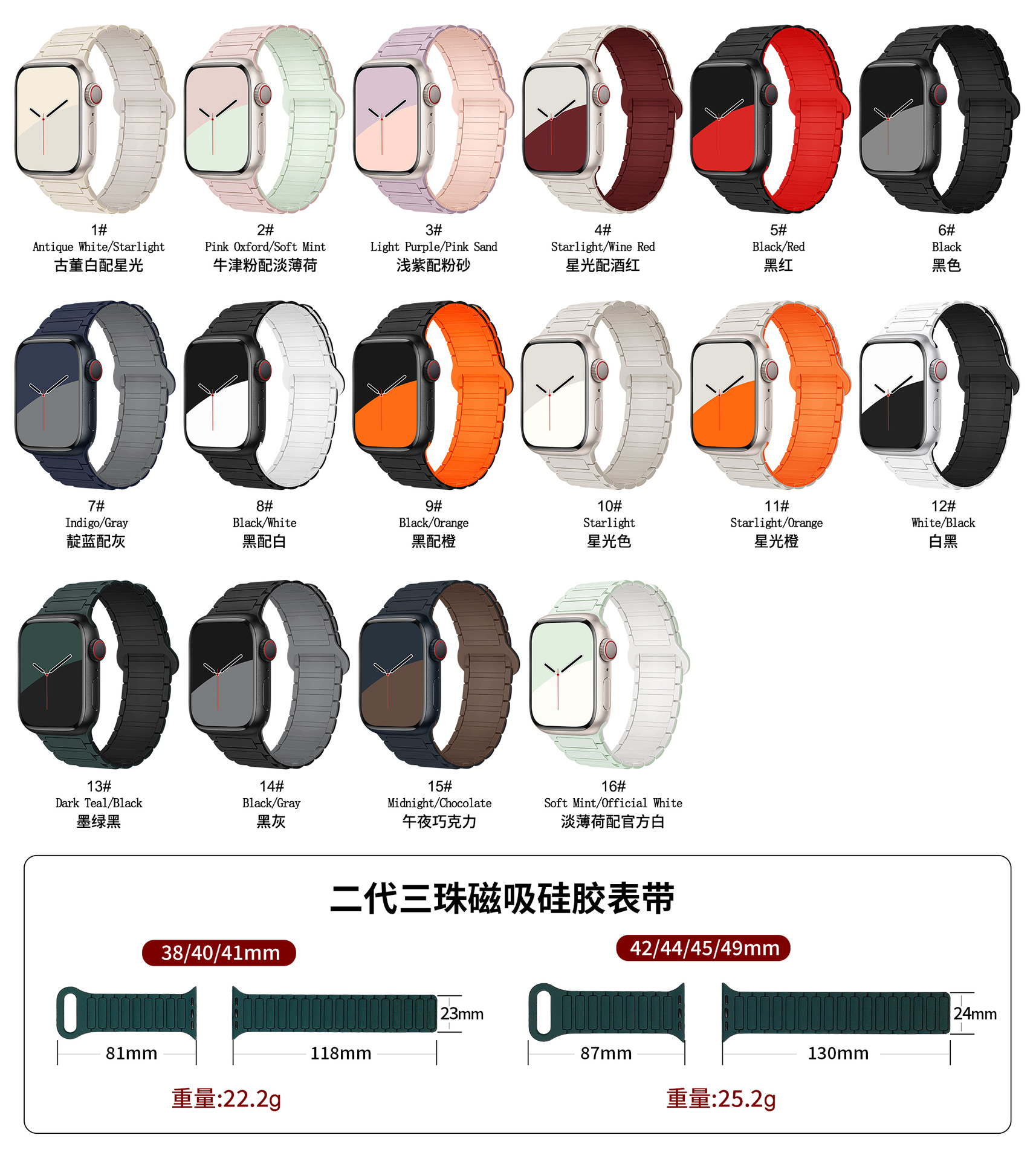 | Especificaciones | 38 / 40 / 41 / (10 generación 42mm) universal, (1 / 2 / 3 generación 42mm) / 44 / 45 / 46 / 49mm universal |