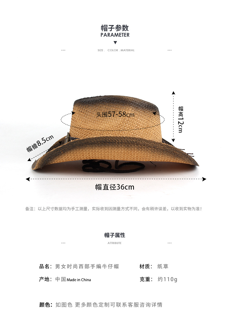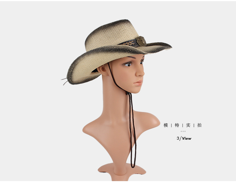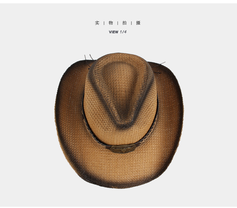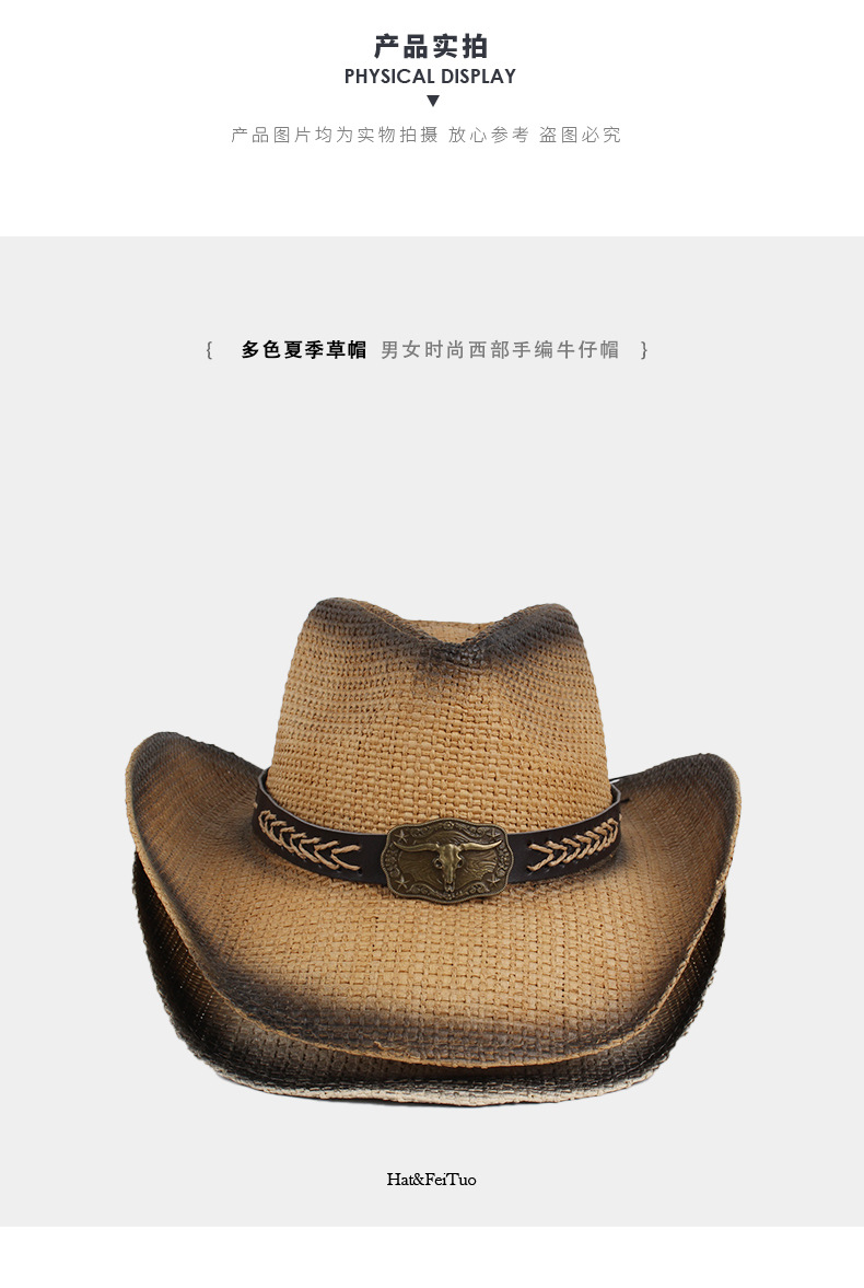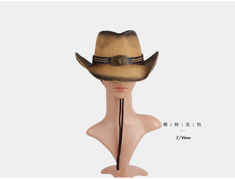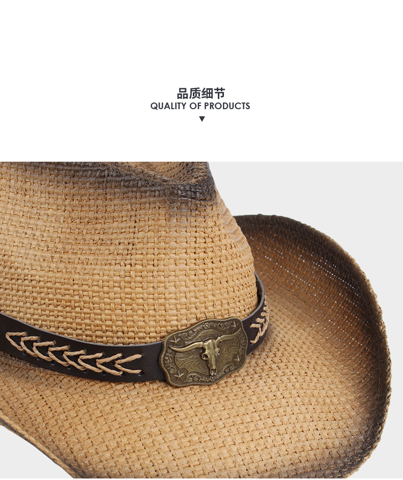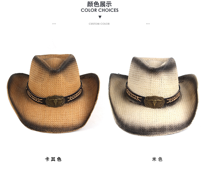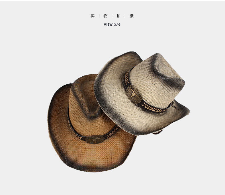 Nuevos productos de comercio exterior transfronterizo al por mayor sombreros de paja de vaqueros occidentales sombreros pintados a mano sombreros de cabeza de toro con sombreros de jazz