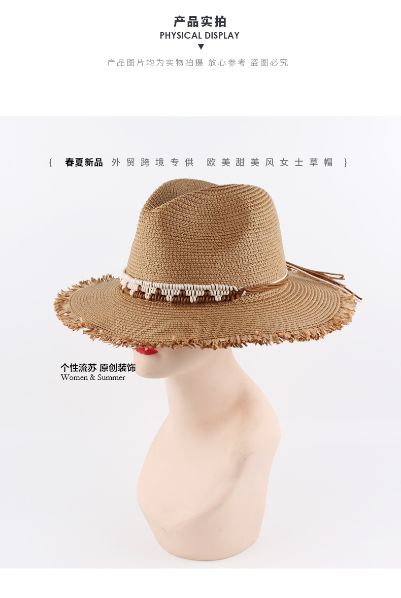 Verano nuevo comercio exterior transfronterizo de las mujeres sombrero de panamá borla original sombrero de paja sombrero de moda británica al por mayor
