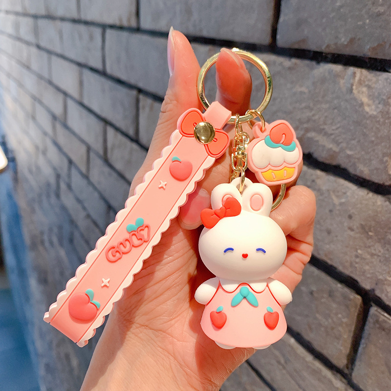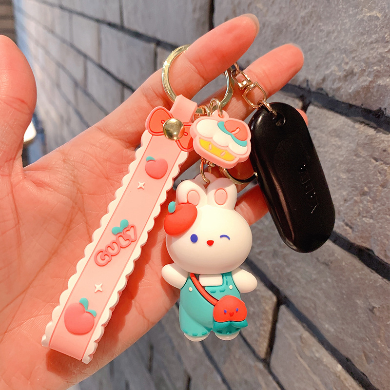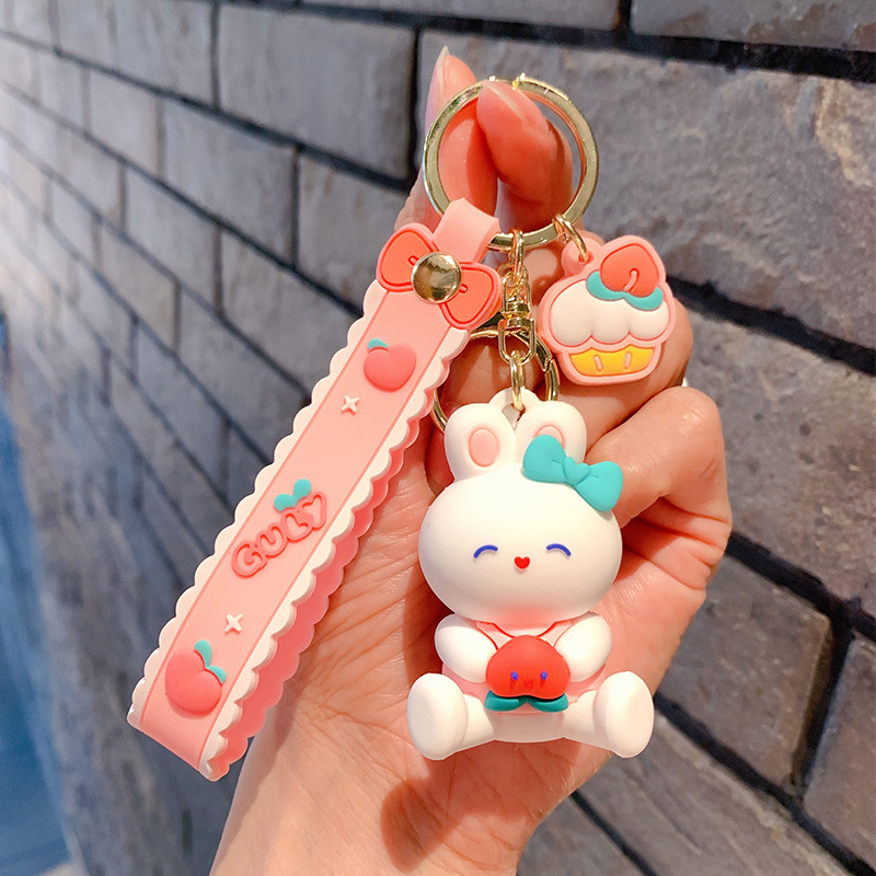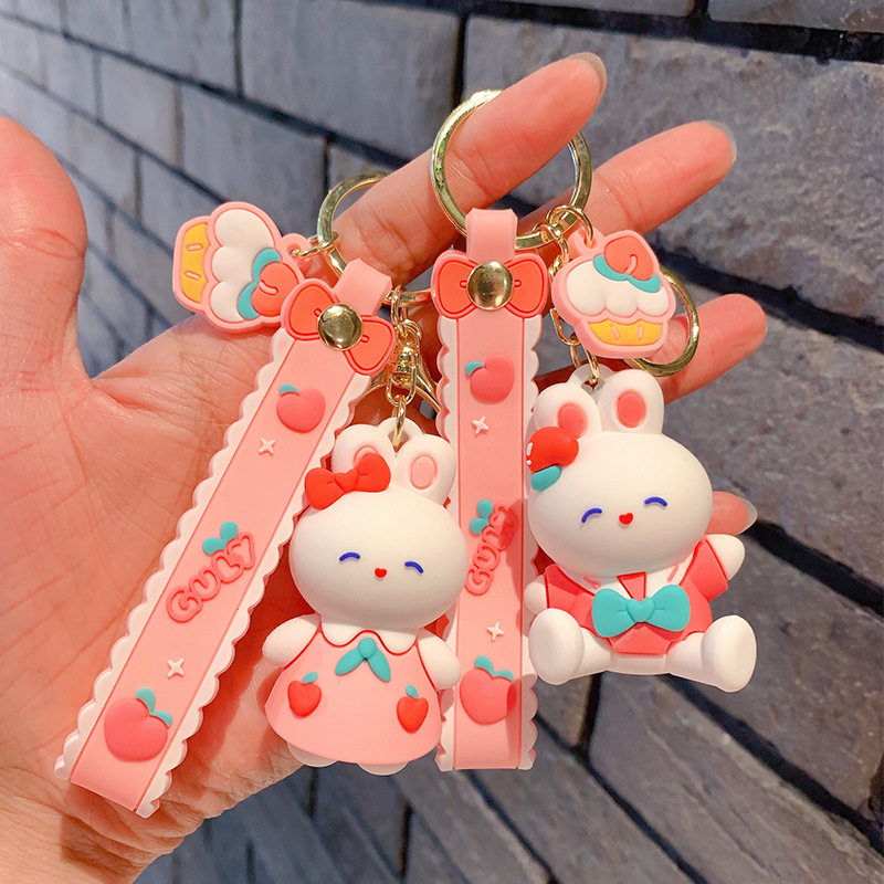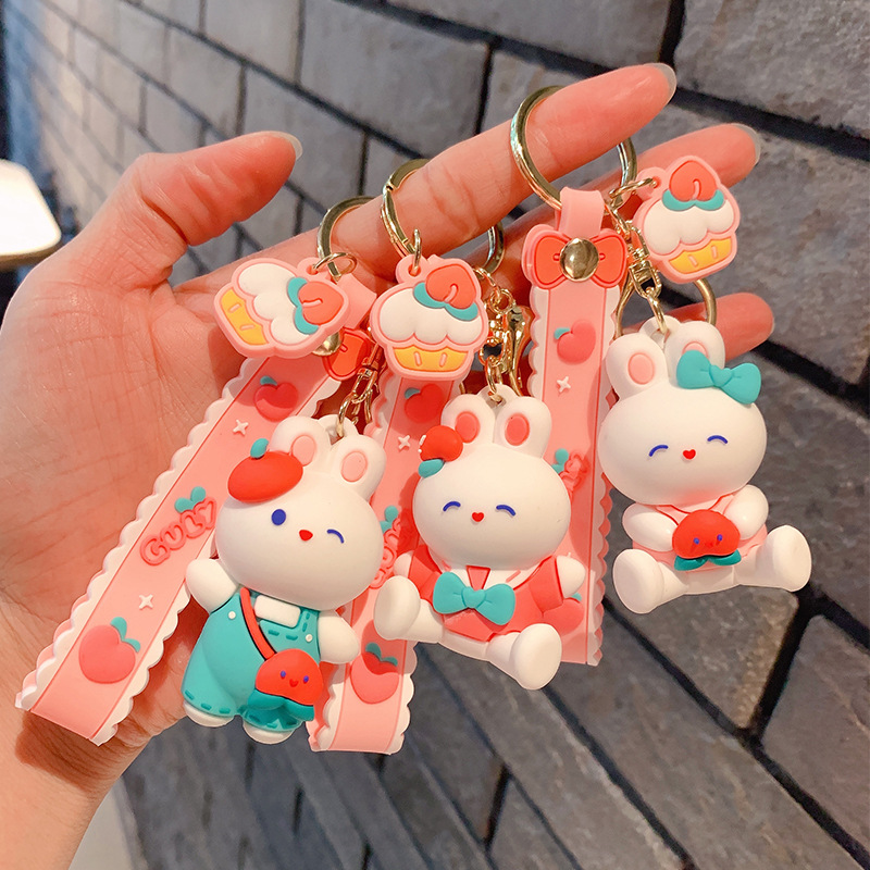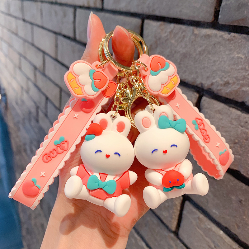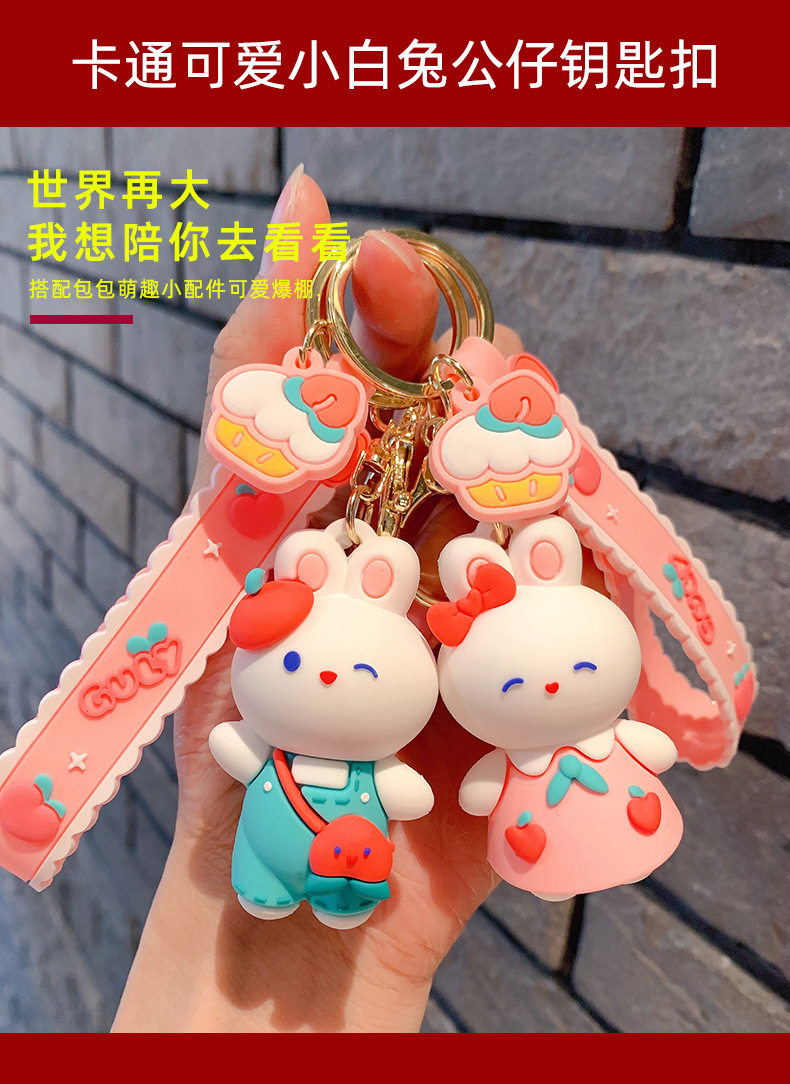 Lindo conejito muñeca llavero coche colgante simple dibujos animados conejo blanco muñeca llavero anillo pequeña joyería